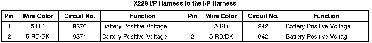 X228 I/P Harness to the I/P Harness