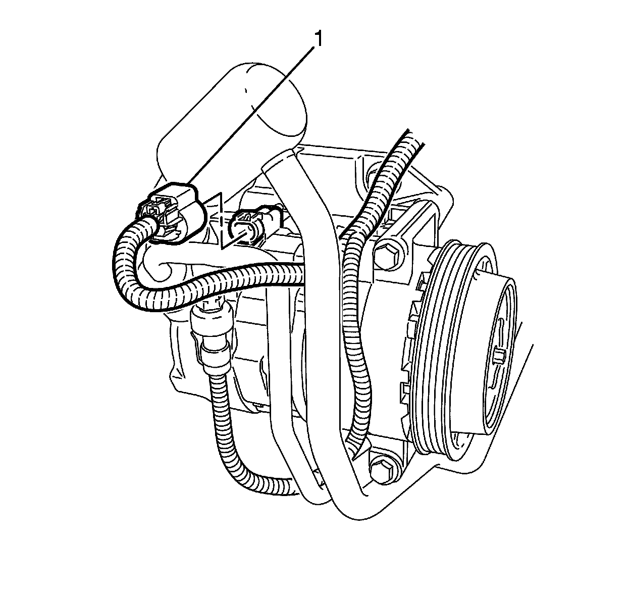 11. Remove the compressor to compressor bracket retaining bolts (1).