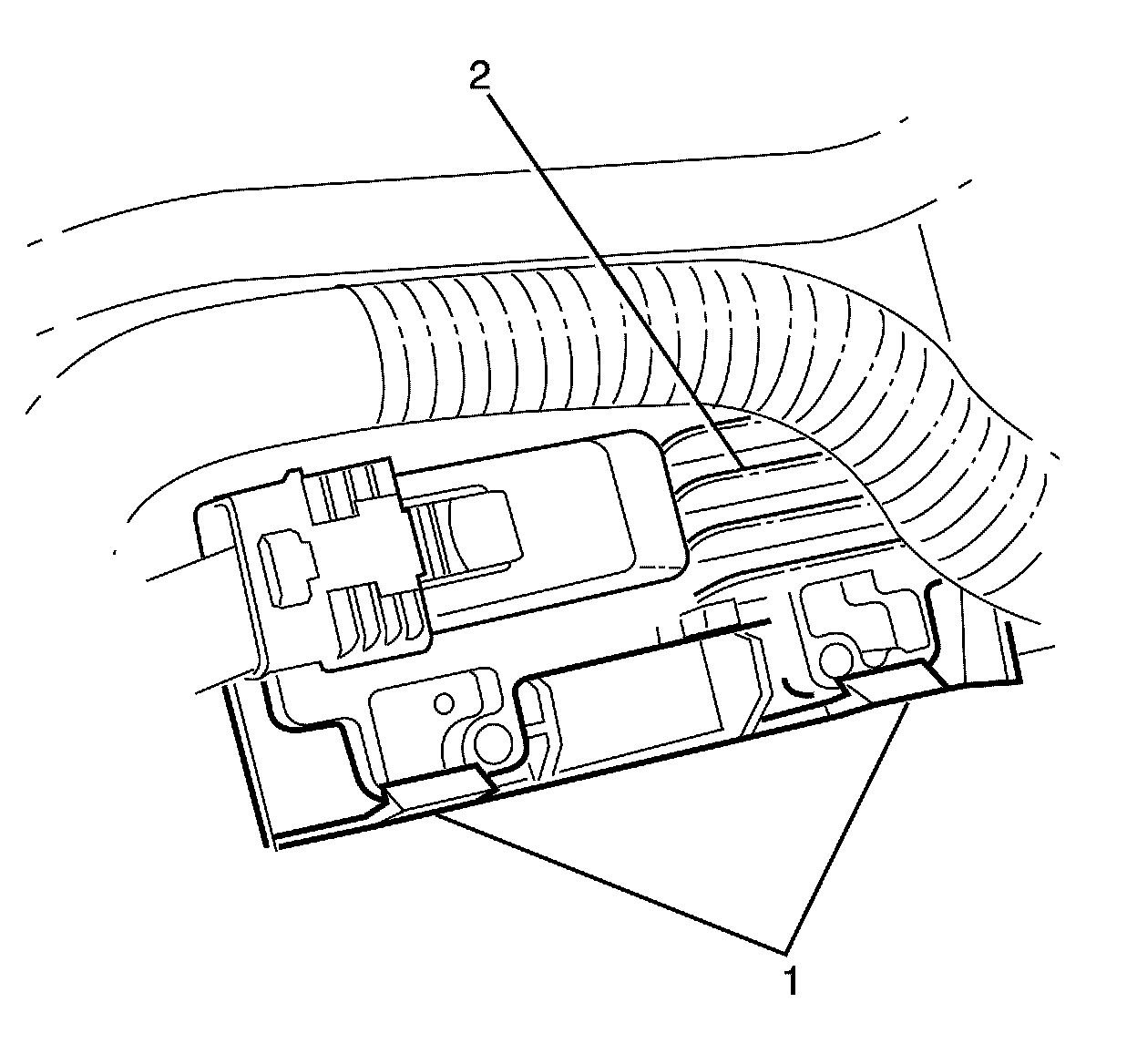 3. Engage the ECM retaining clips (1) to secure the ECM (2).