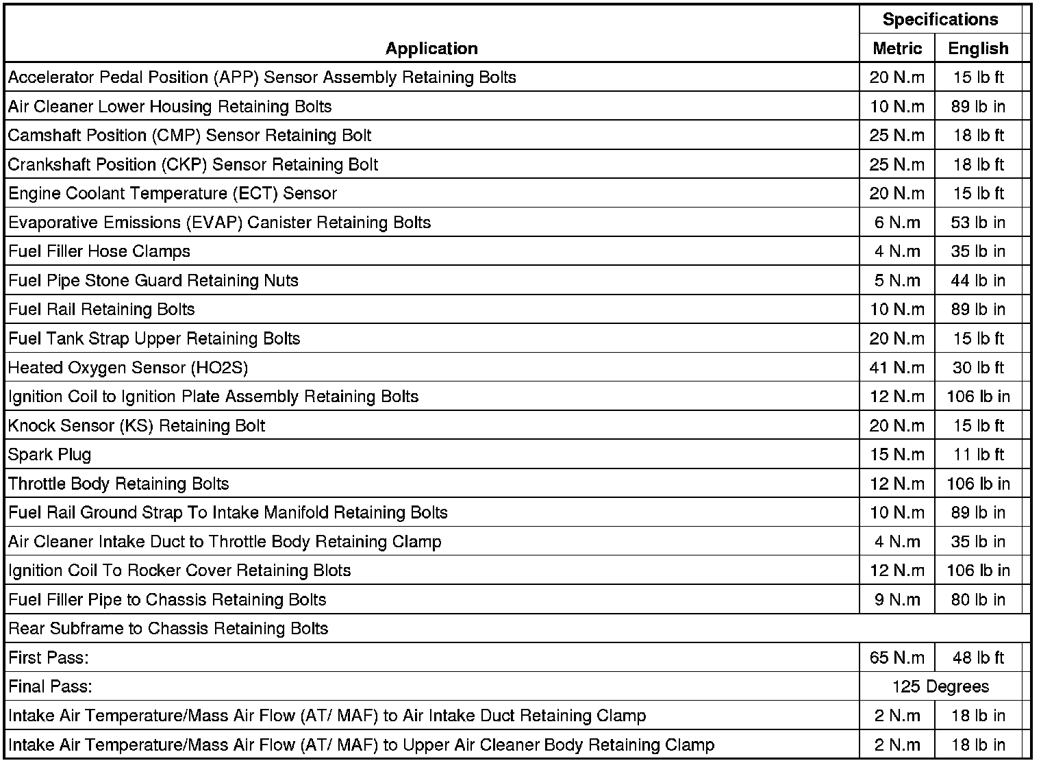 Fastener Tightening Specifications
