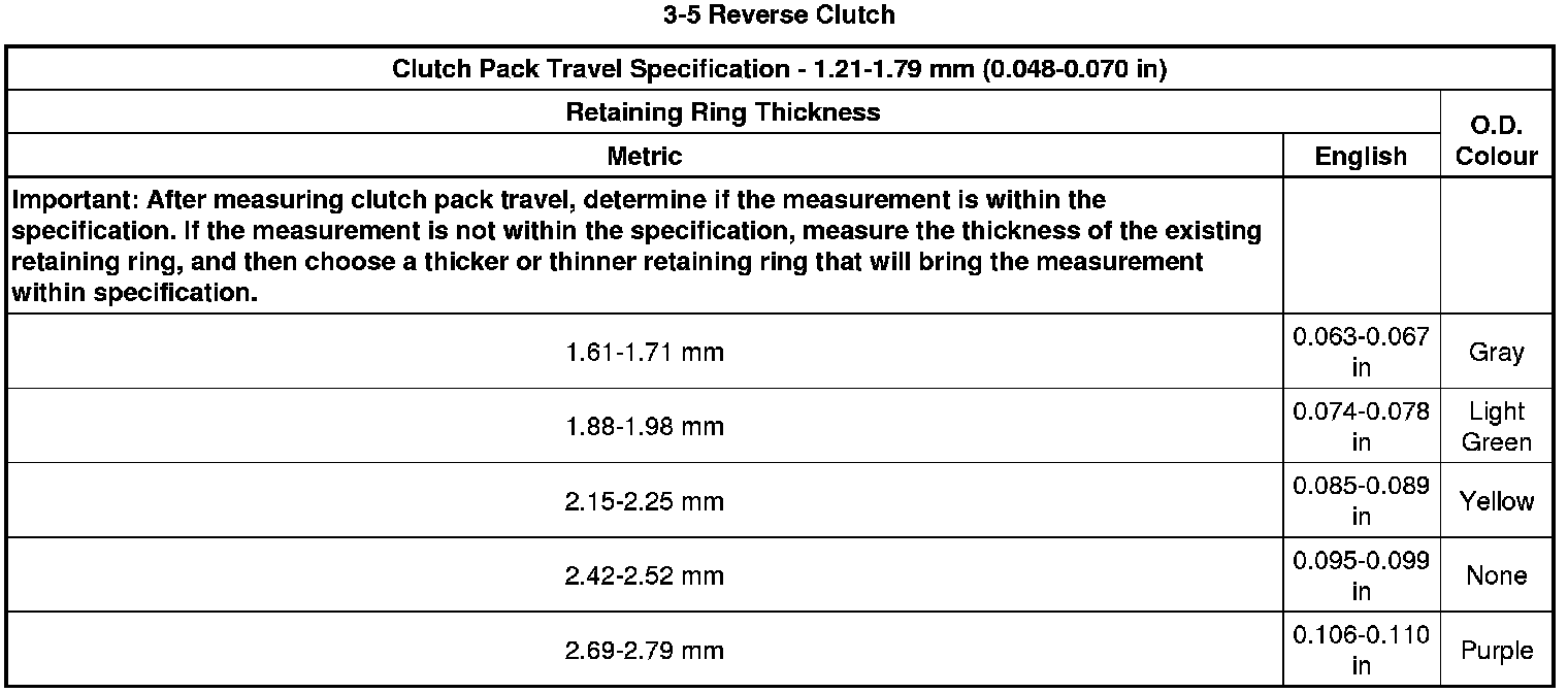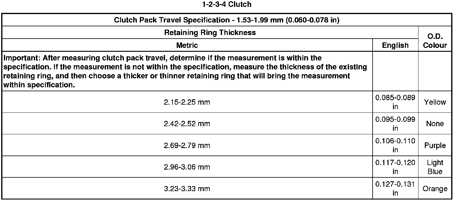 Clutch Backing Plate Retaining Ring Specifications