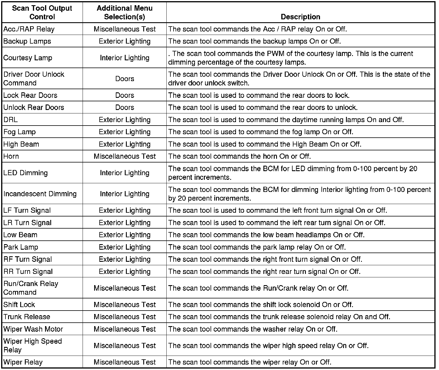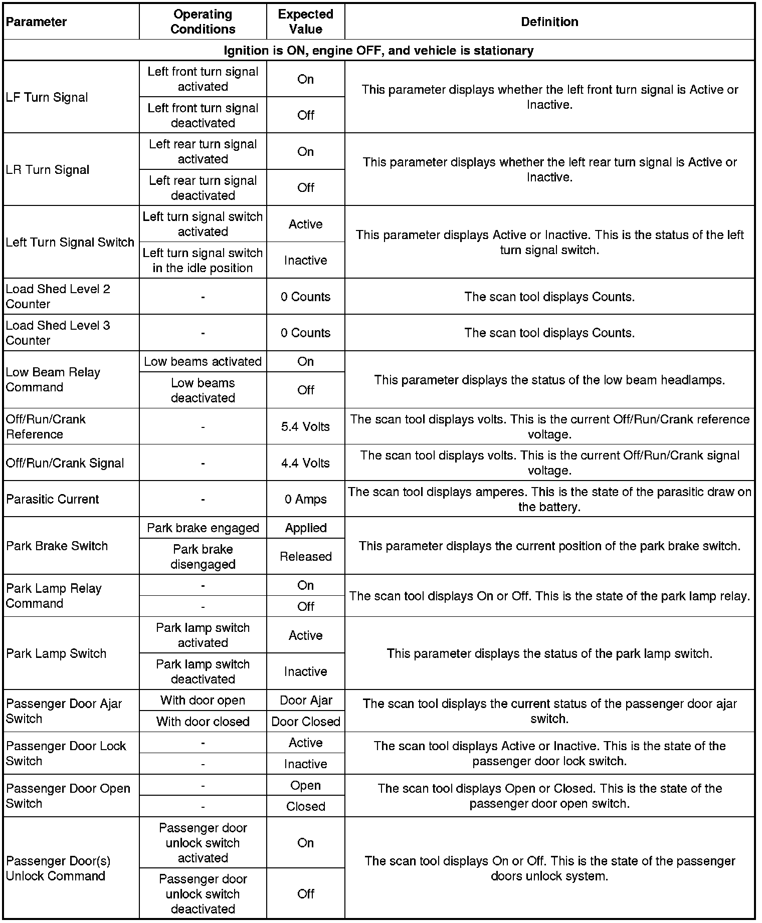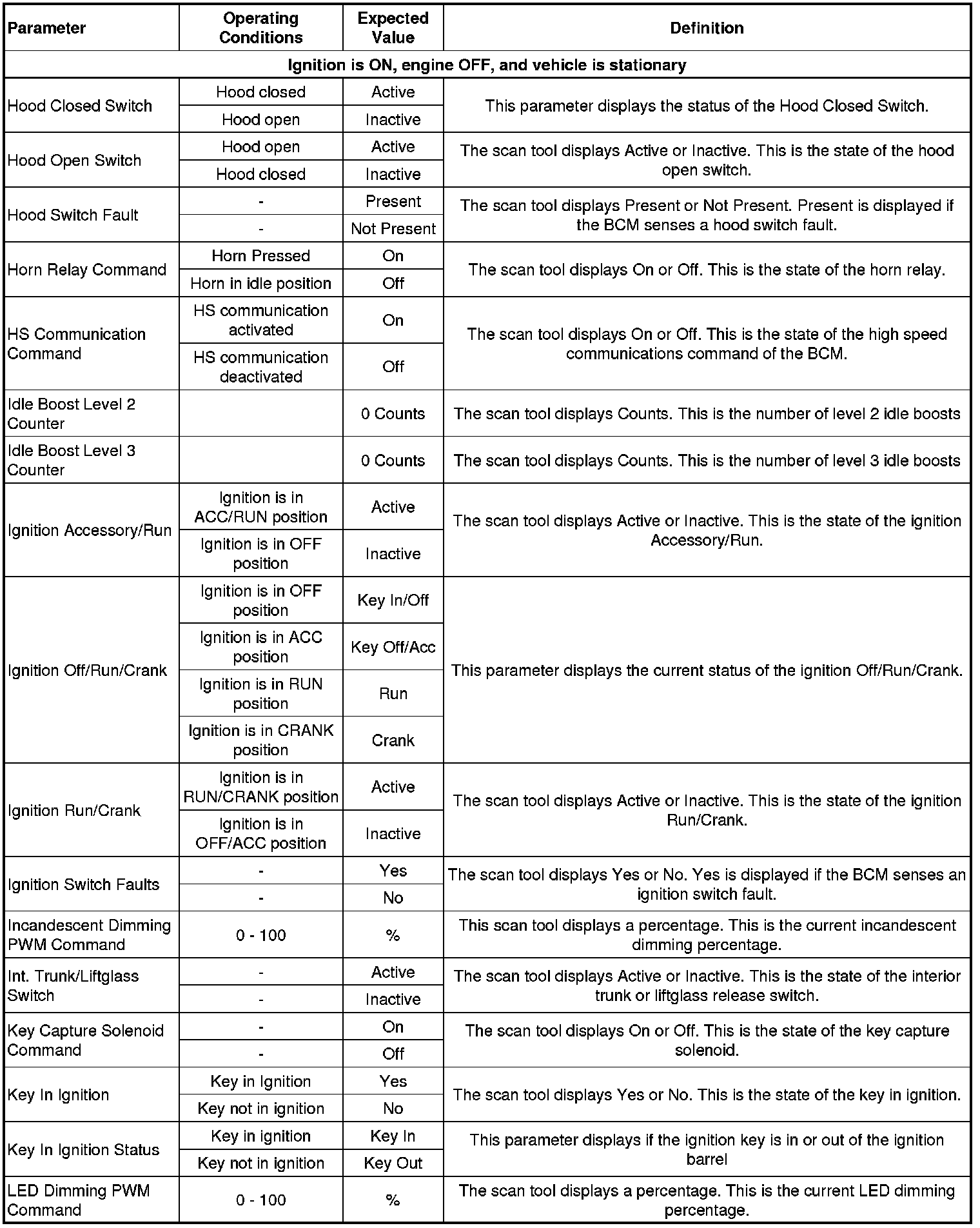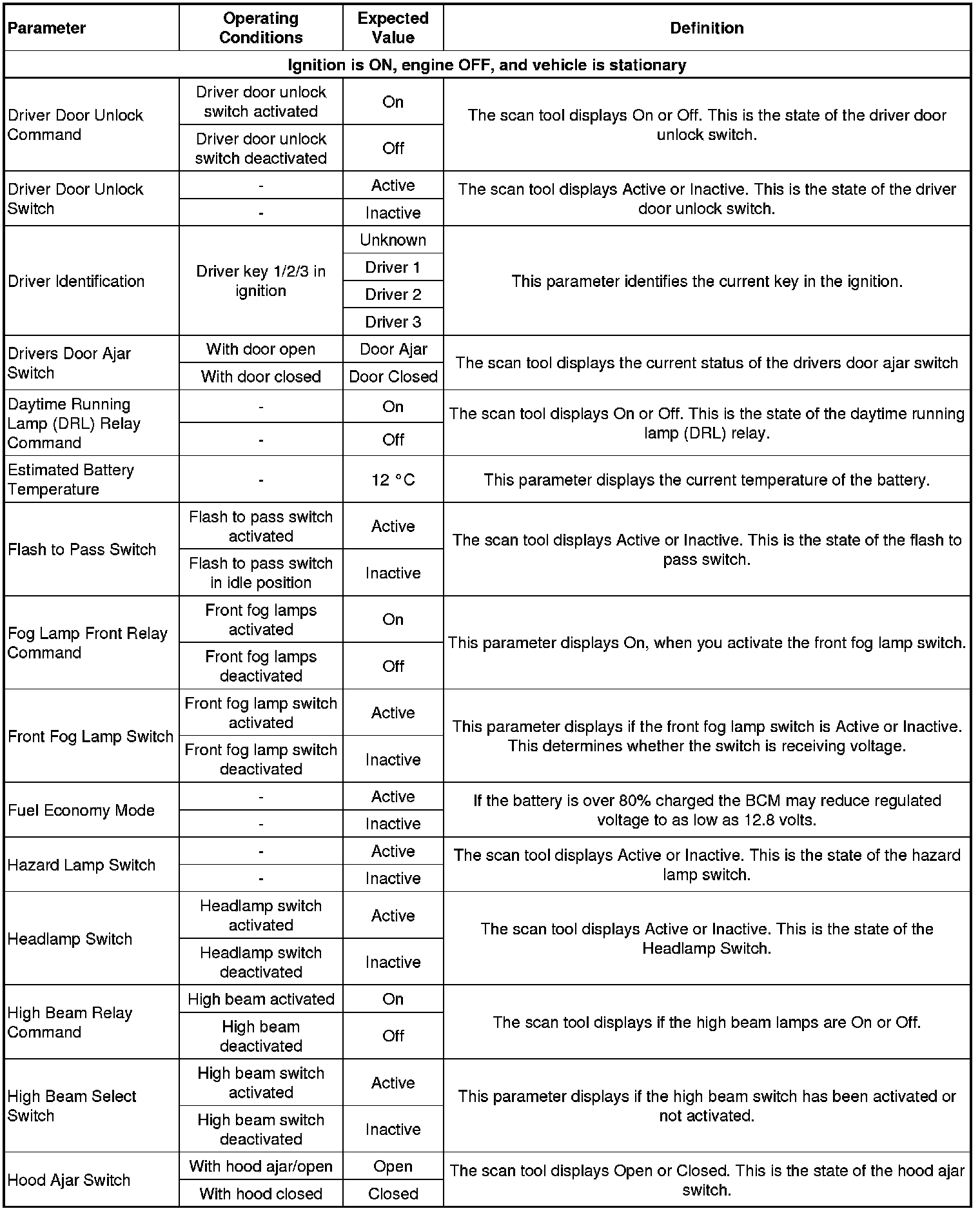 The scan tool data values were taken from a known good vehicle under the following conditions: