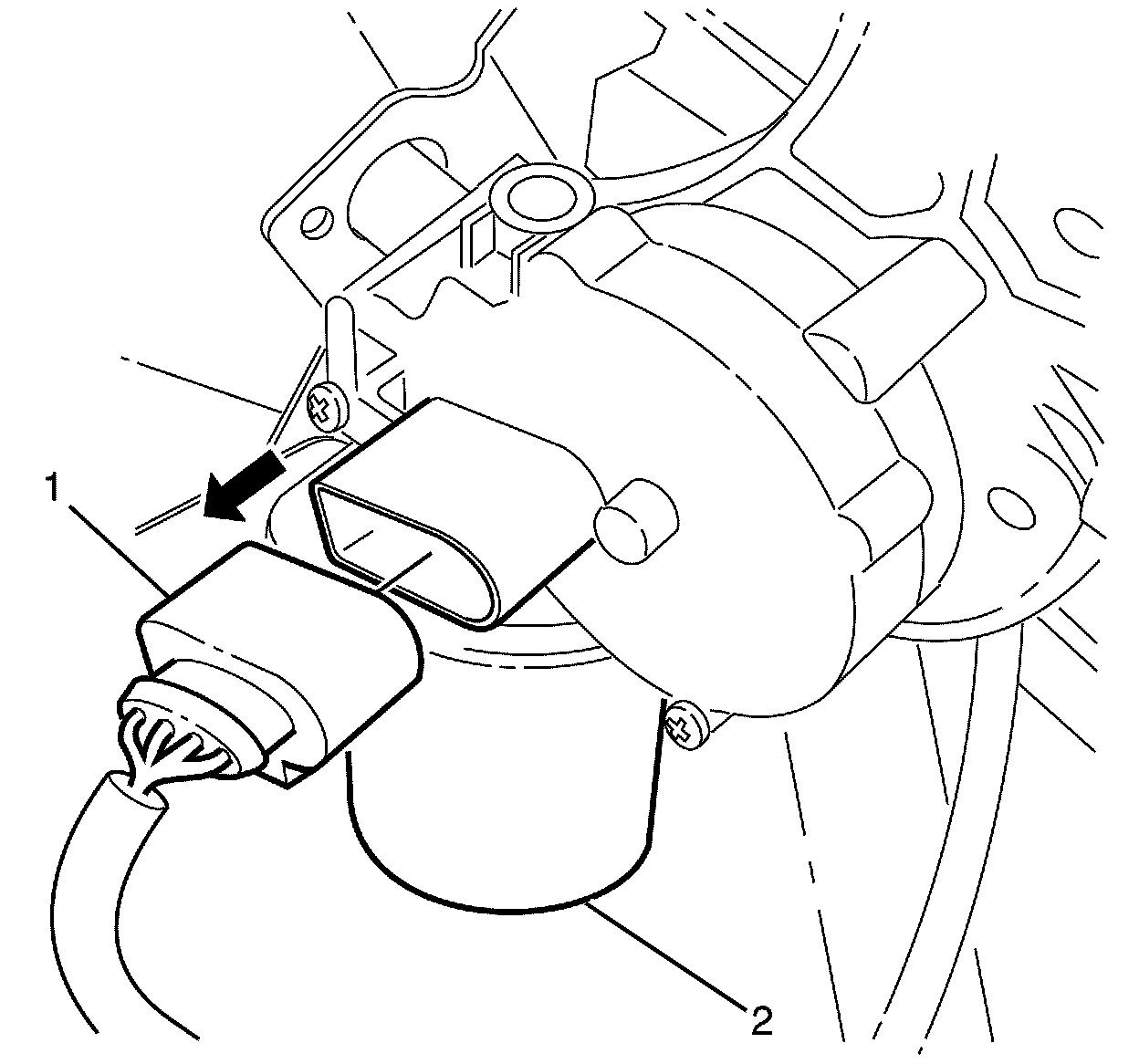 3. Disconnect the electrical connector (1) from the wiper motor (2).