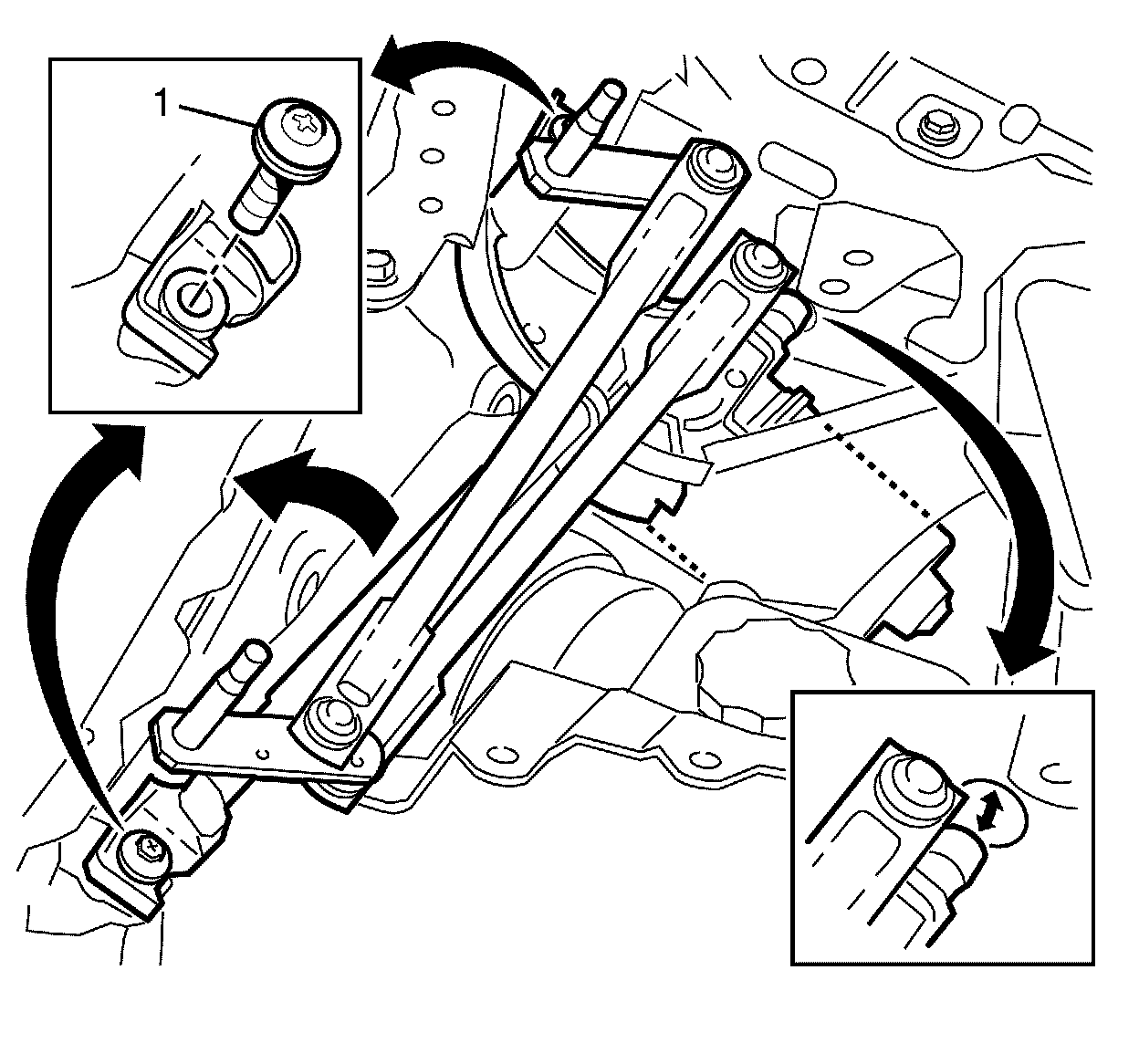 2. Install the wiper motor module to bulk head retaining bolts (1).