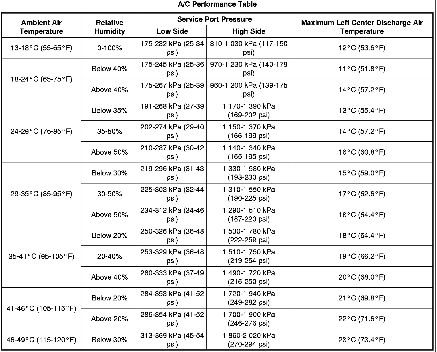 Air Conditioning (A/C) System Performance Test (L26 - 3.8L)