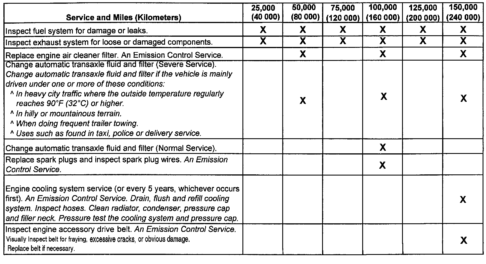 service (I or II) after the indicated miles (kilometers) shown for each item.