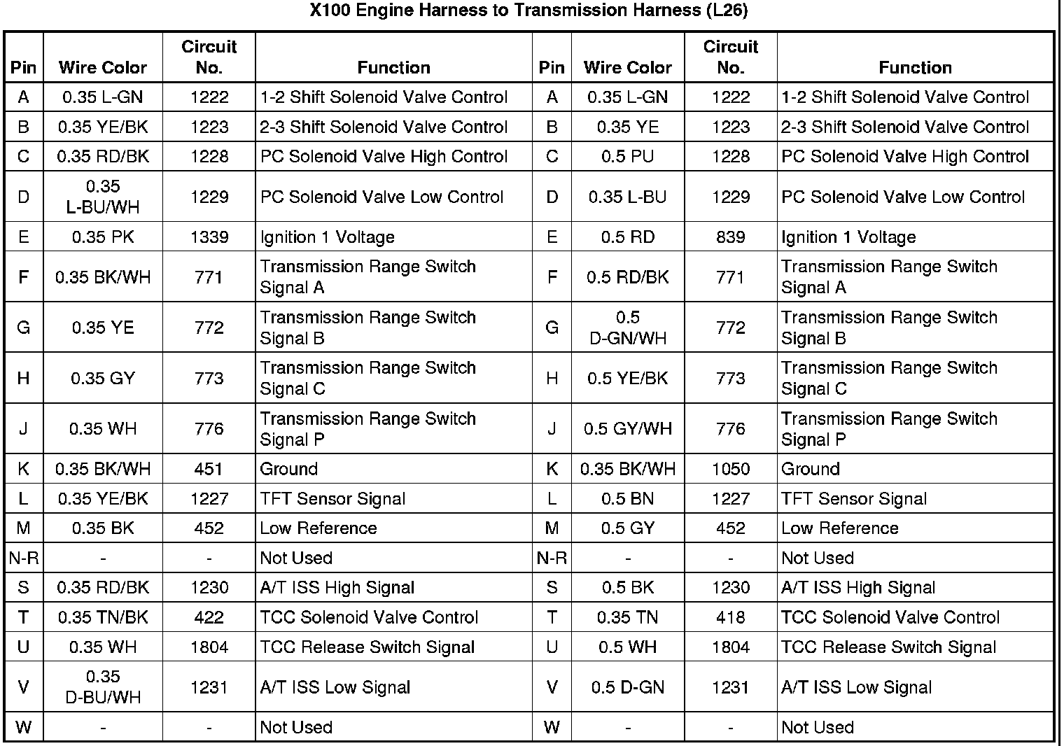 X100 Engine Harness to Transmission Harness (L26 - 3.8L)