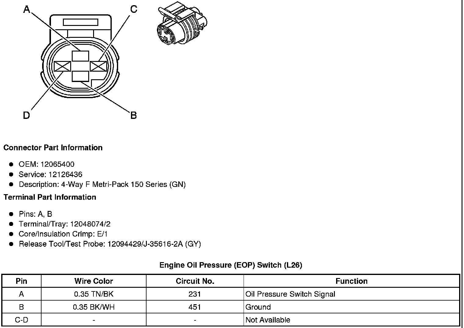 Engine Oil Pressure (EOP) Switch (L26 - 3.8L)