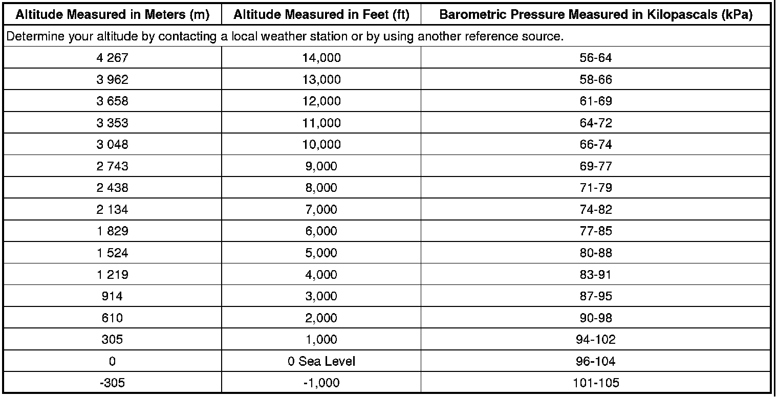 Altitude Versus Barometric Pressure