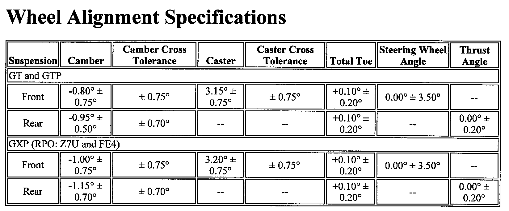 Wheel Alignment Specifications