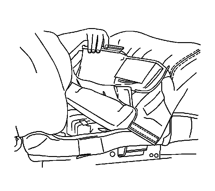 7. Install the front seat trim panel. Refer to Front Seat Trim Panel Replacement (Front Seat Trim Panel Replacement) .