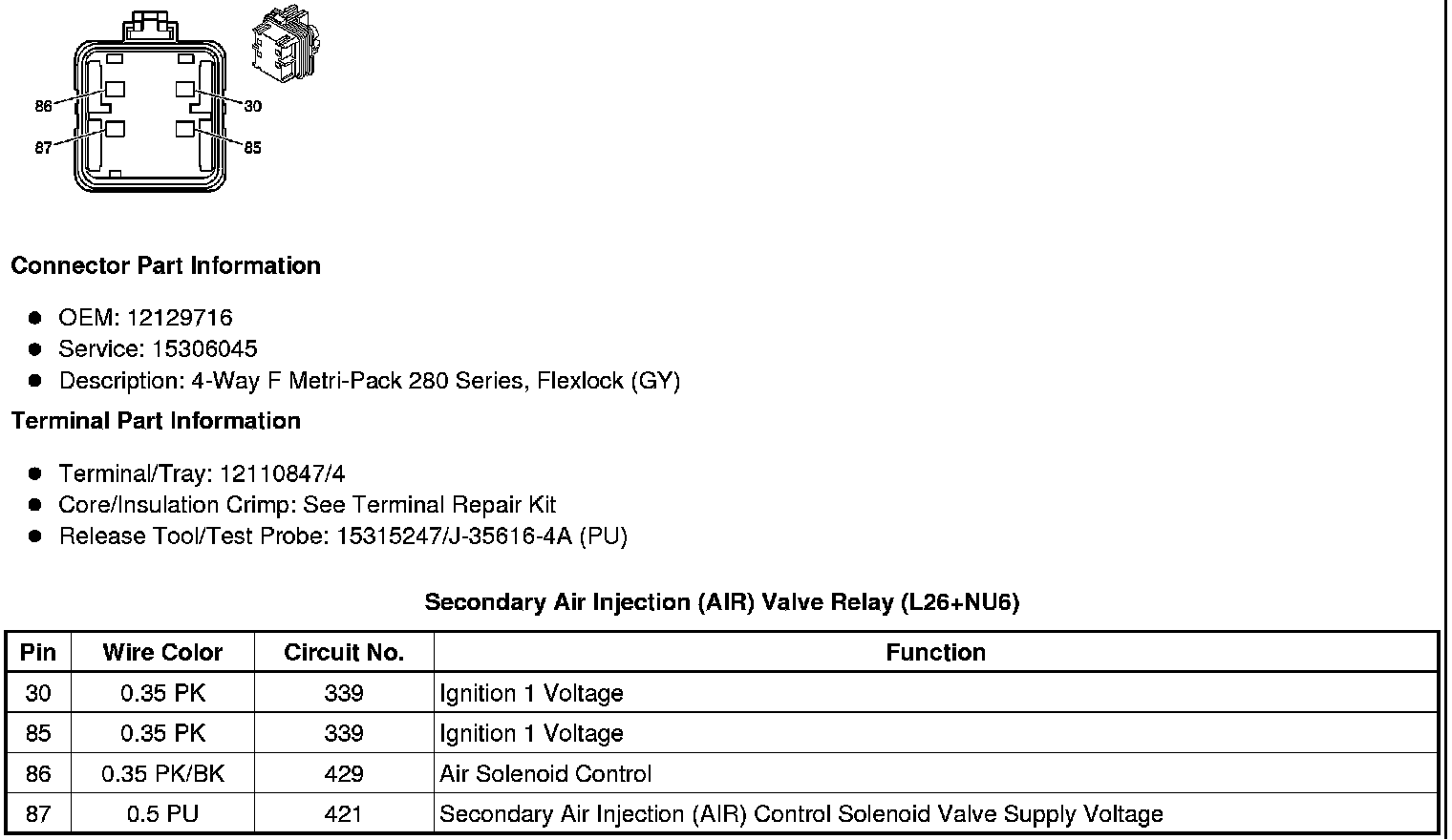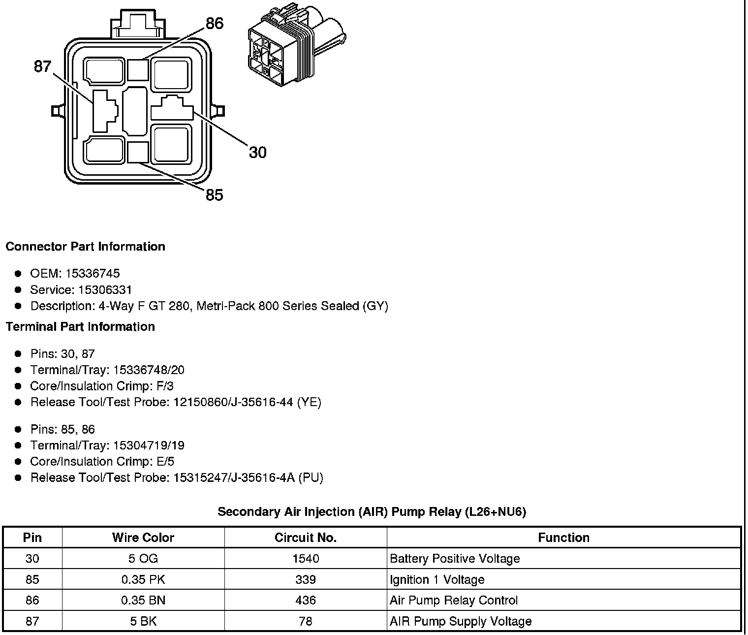 Secondary Air Injection (AIR) Pump Relay (L26+NU6)