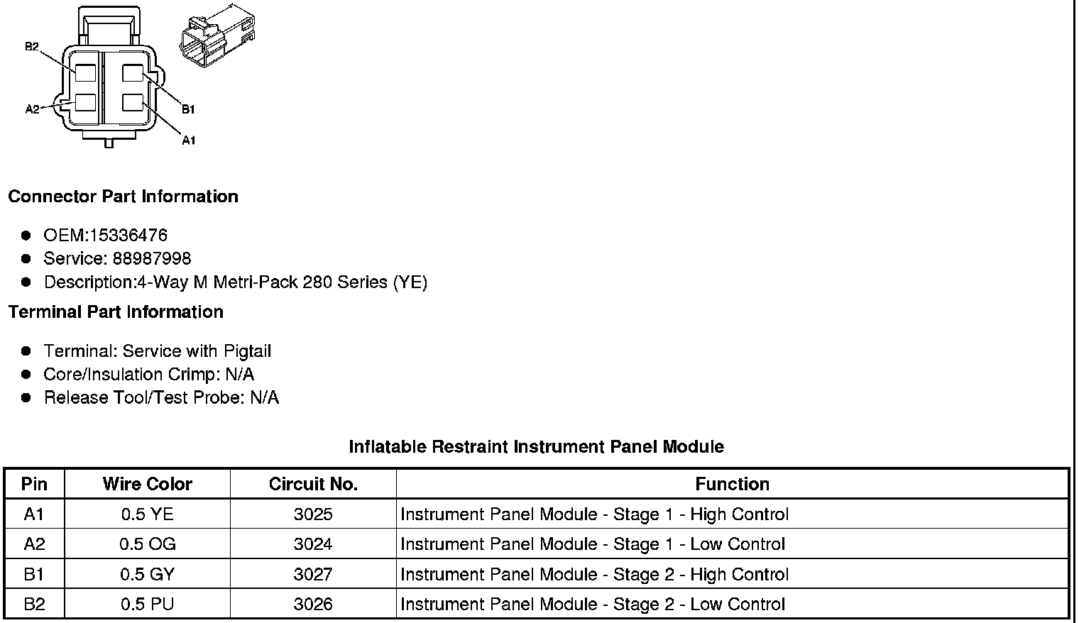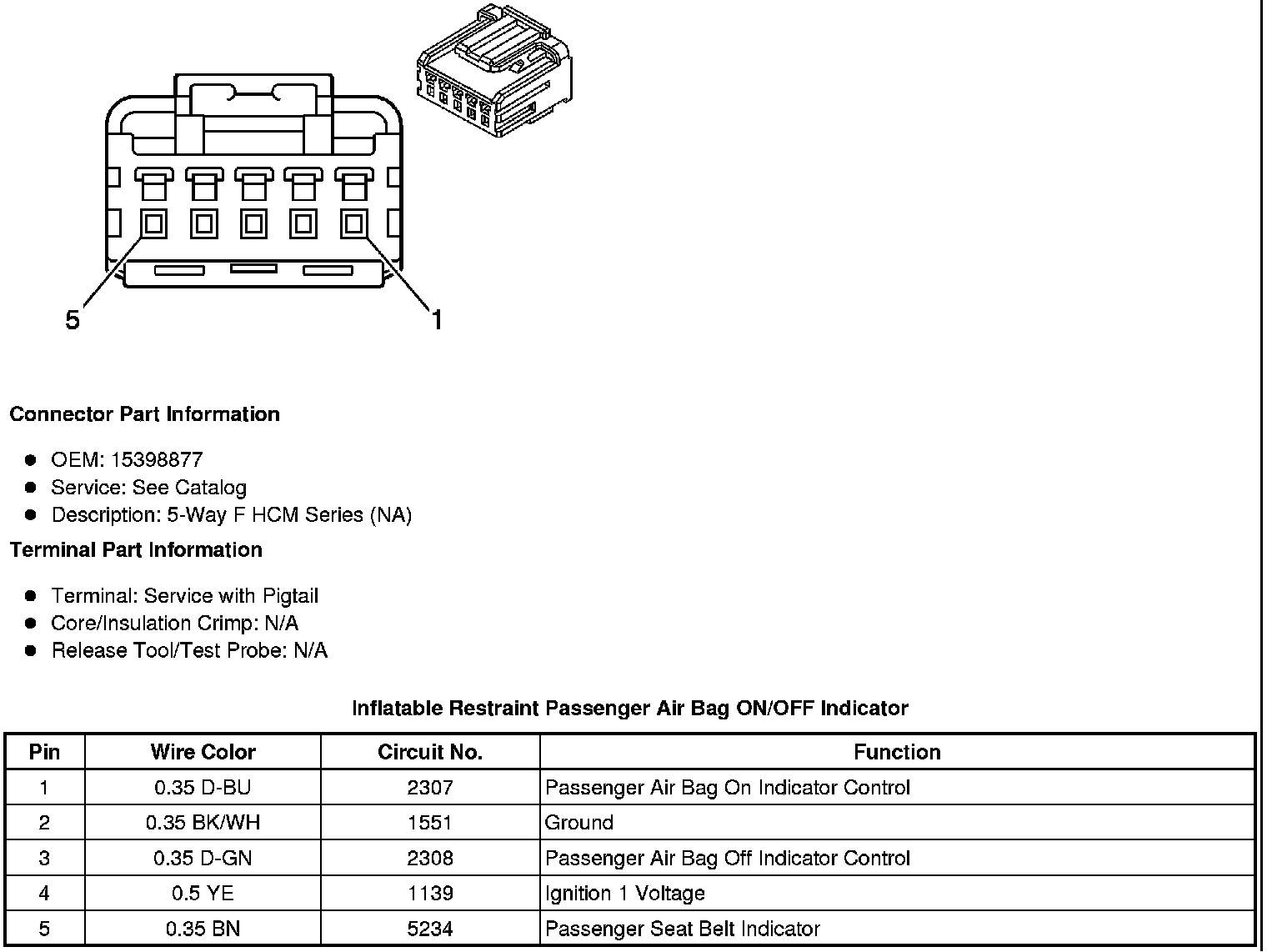 Inflatable Restraint Passenger Air Bag ON/OFF Indicator