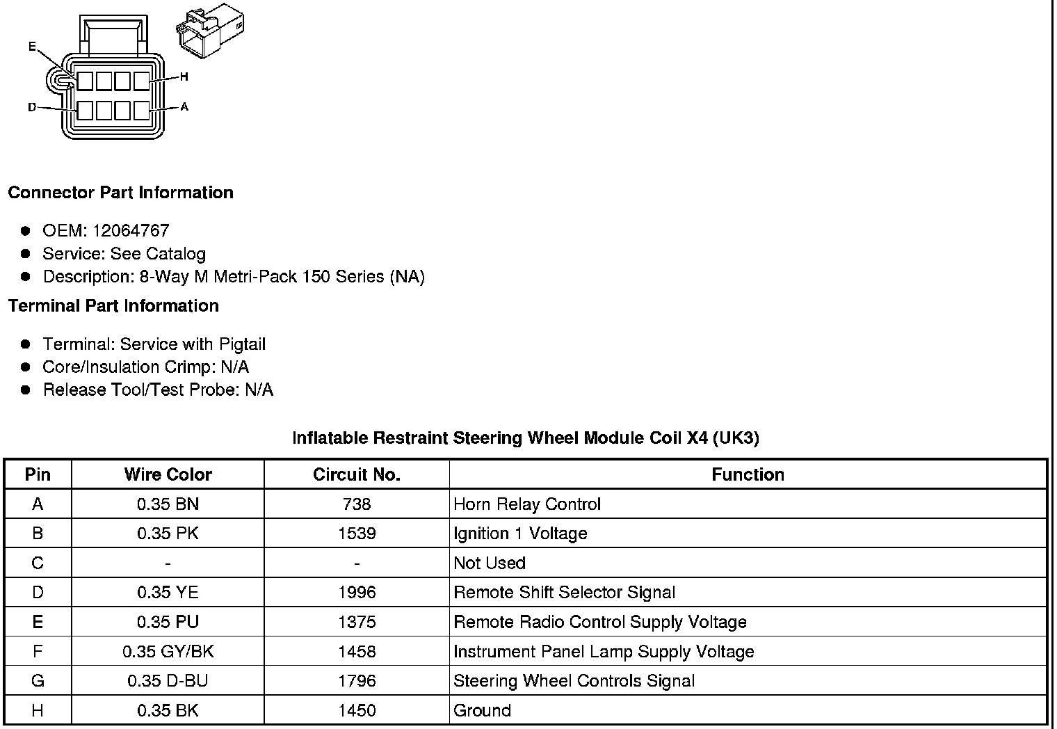 Inflatable Restraint Steering Wheel Module Coil X4 (UK3)