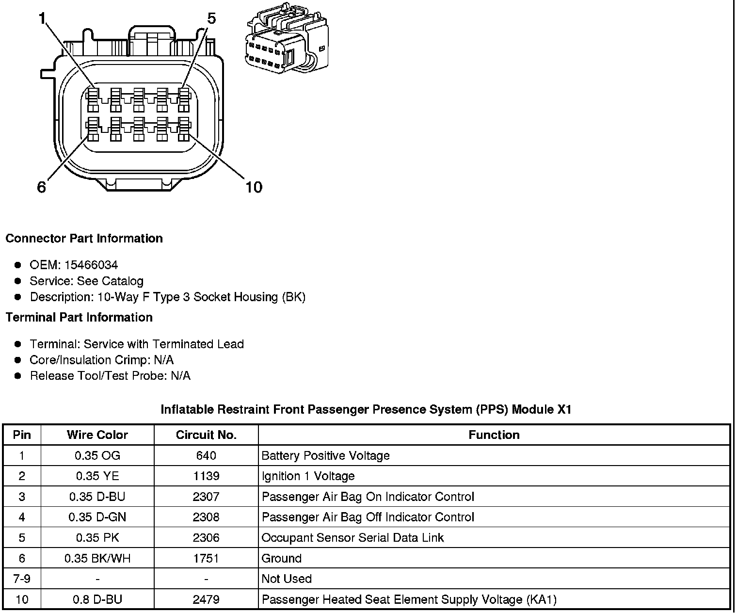 Inflatable Restraint Front Passenger Presence System (PPS) Module X1
