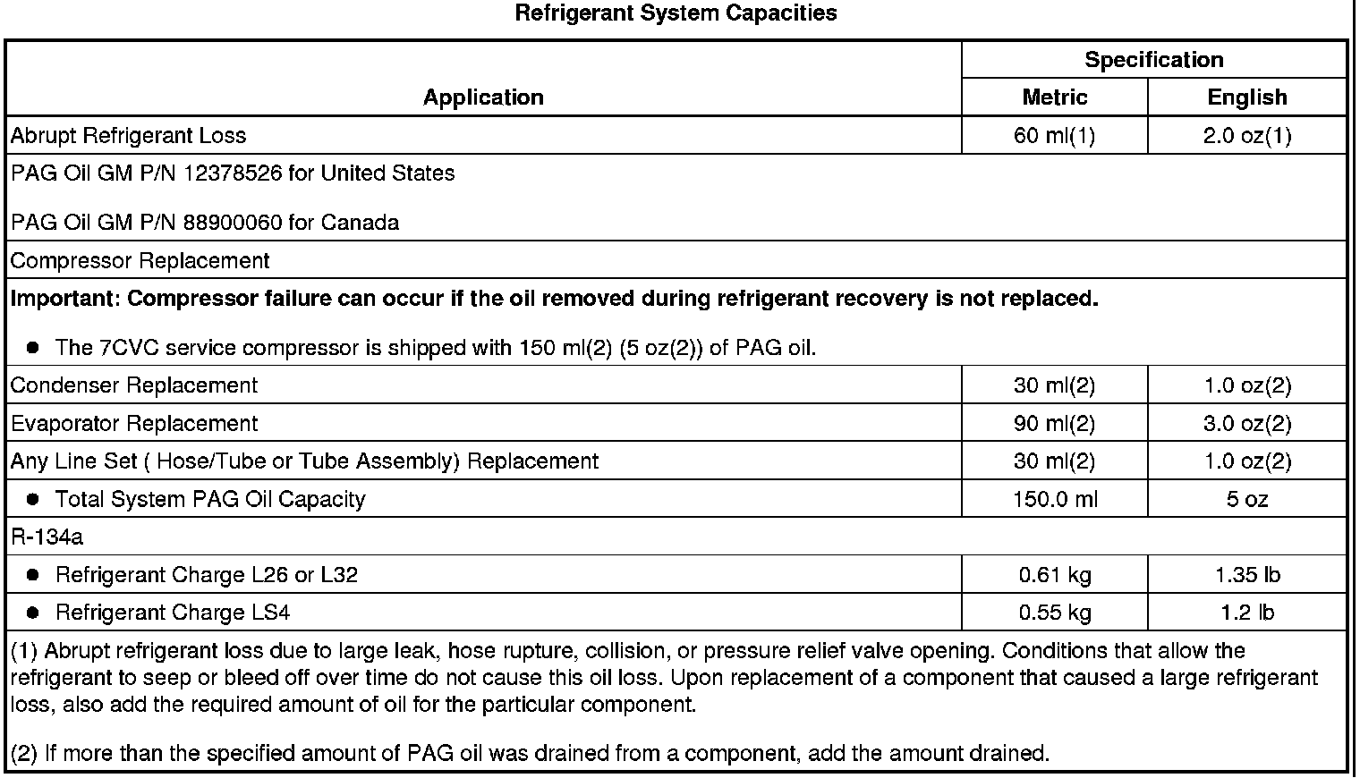 Capacity Specifications