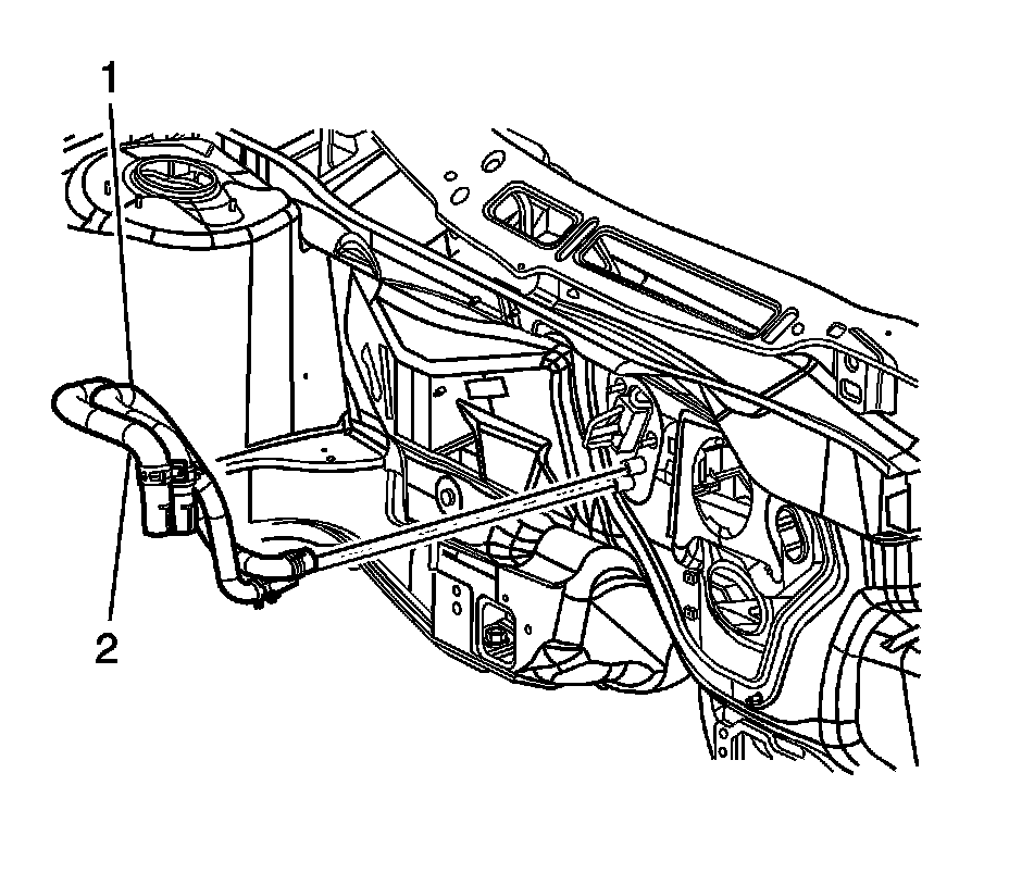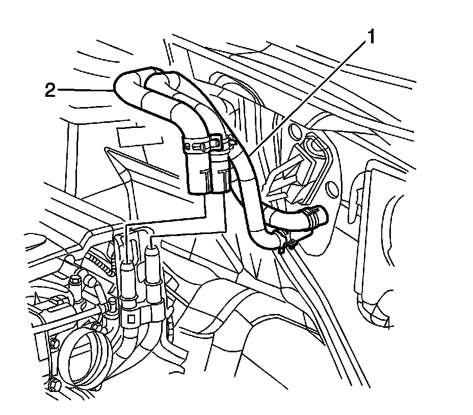 3. Remove the heater outlet hose (2) from the heater pipe.