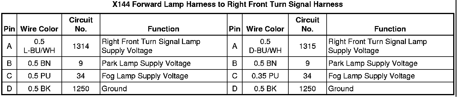 X144 Forward Lamp Harness to Fascia Jumper Harness