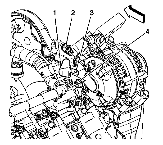 4. Disconnect the generator electrical connector (2).