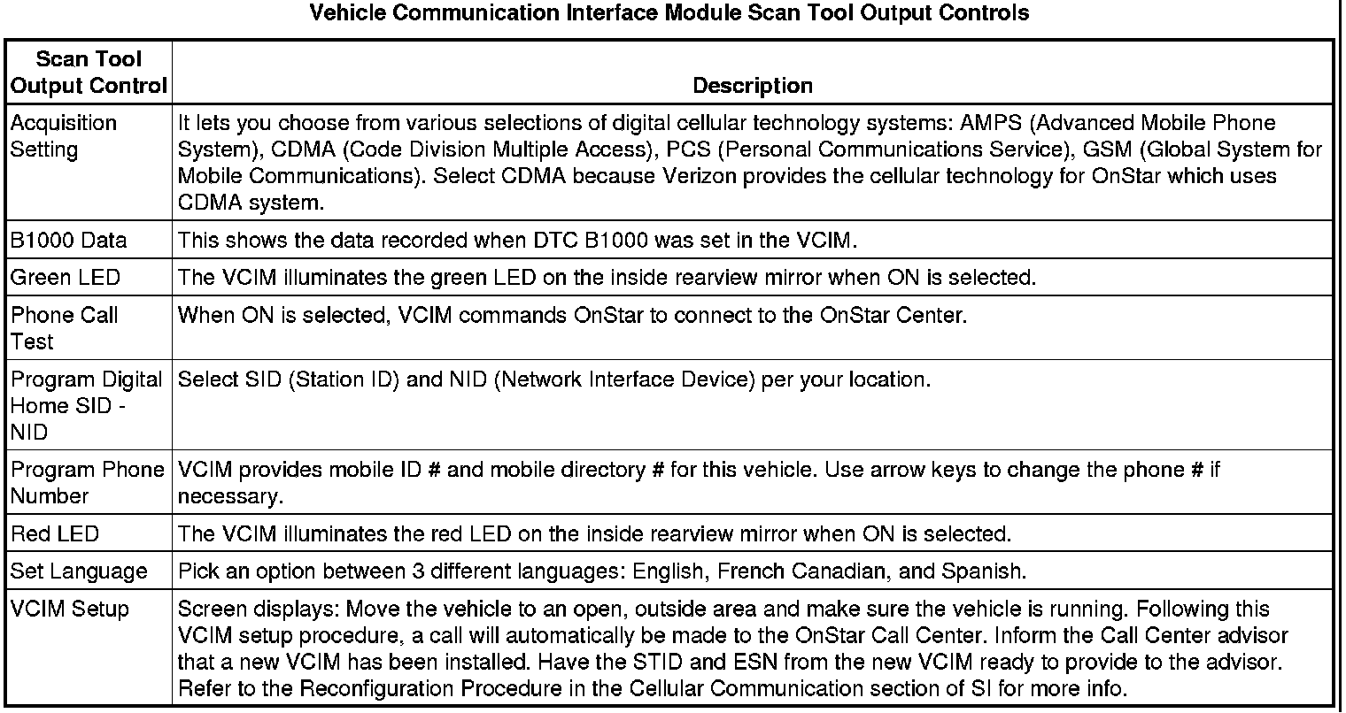 Communication Interface Module Scan Tool Information