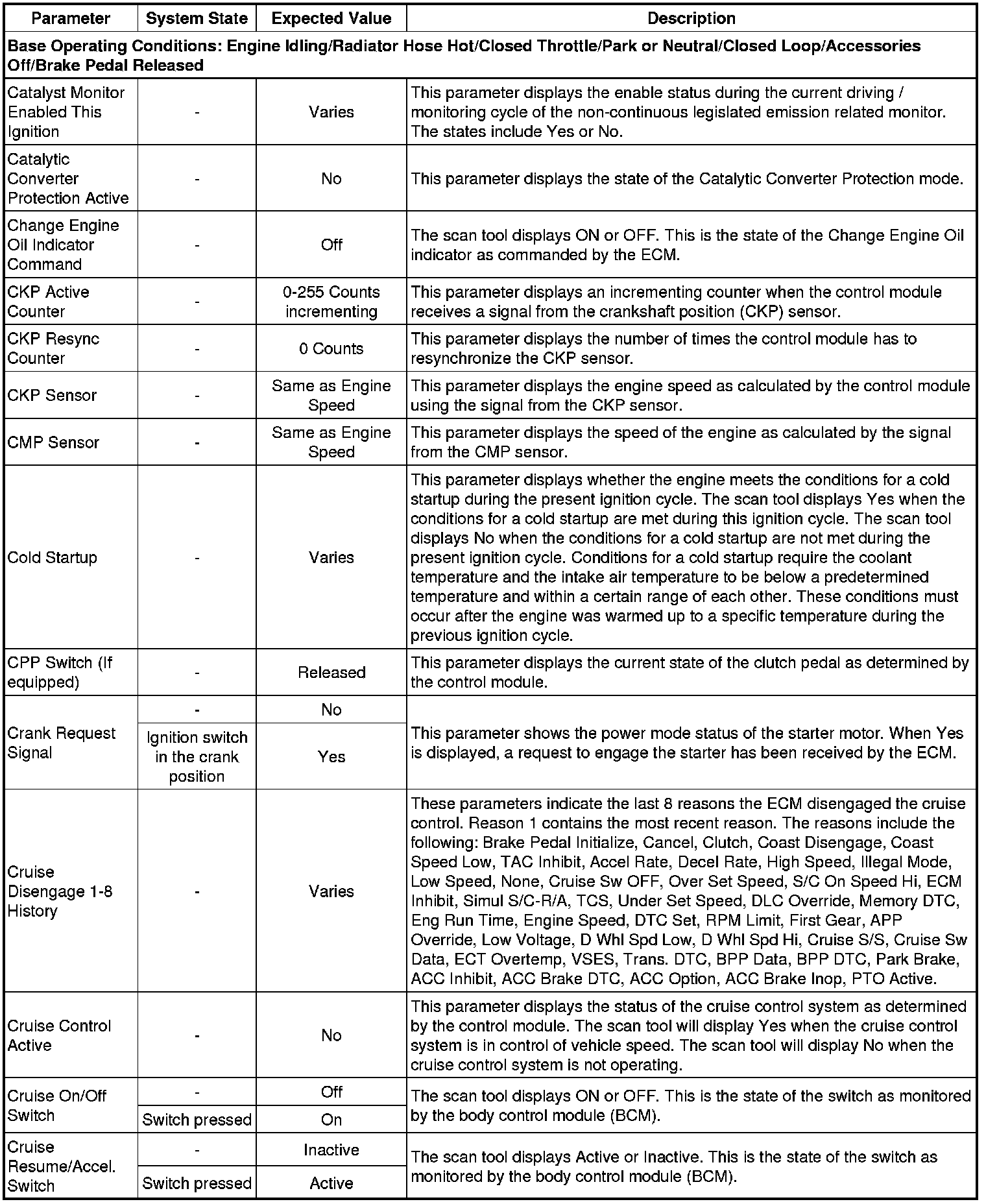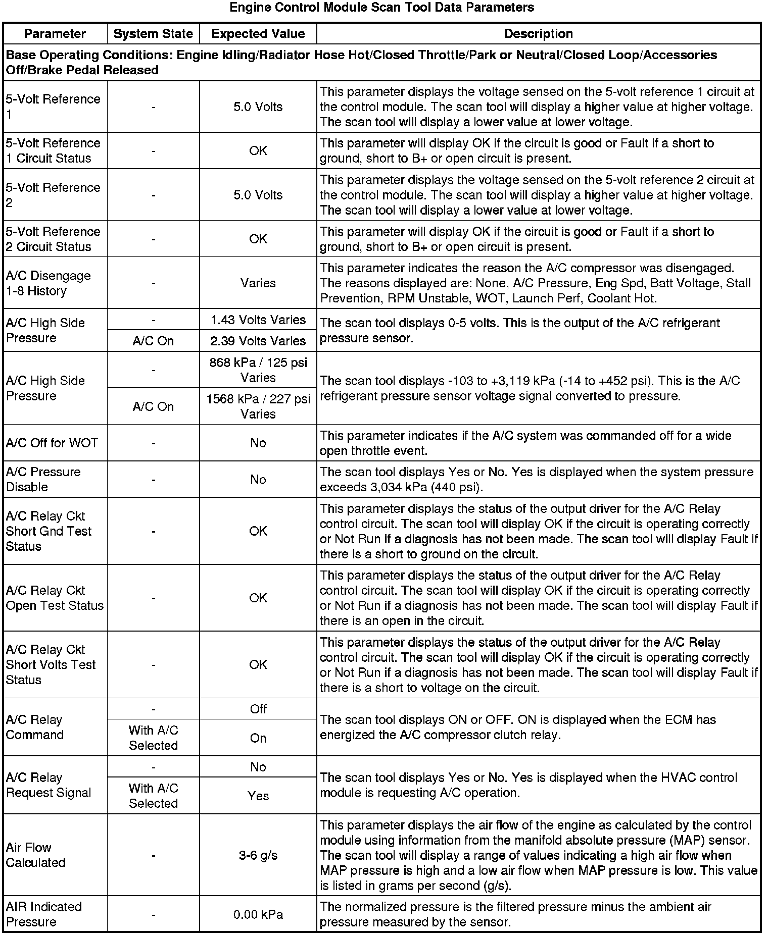 The Engine Control Module Scan Tool Data List contains all engine-related parameters that are available on the scan tool. The list is arranged in alphabetical order. A given parameter may appear in any one of the data lists, and in some cases may appear more than once, or in more than one data list in order to group certain related parameters together.