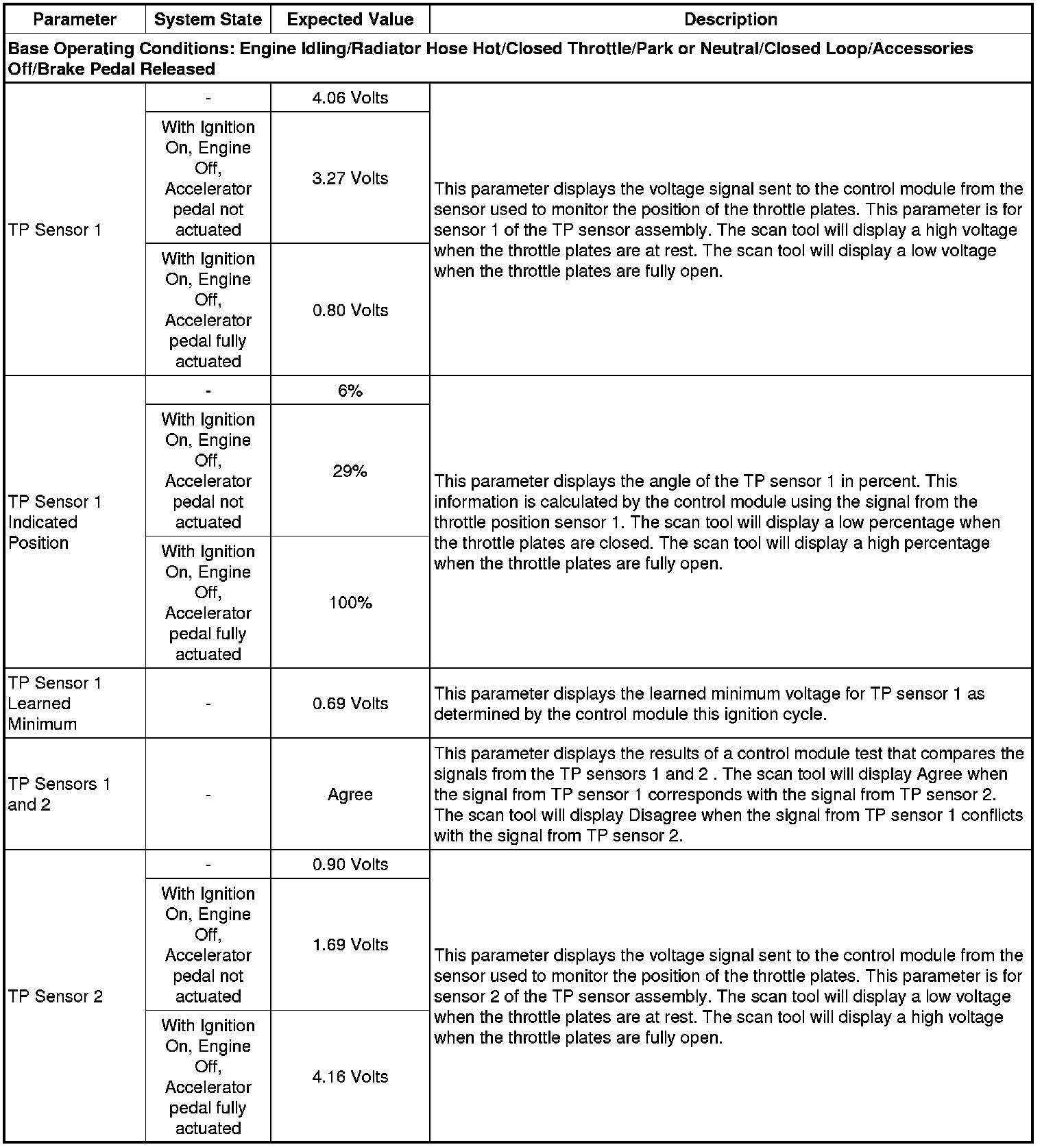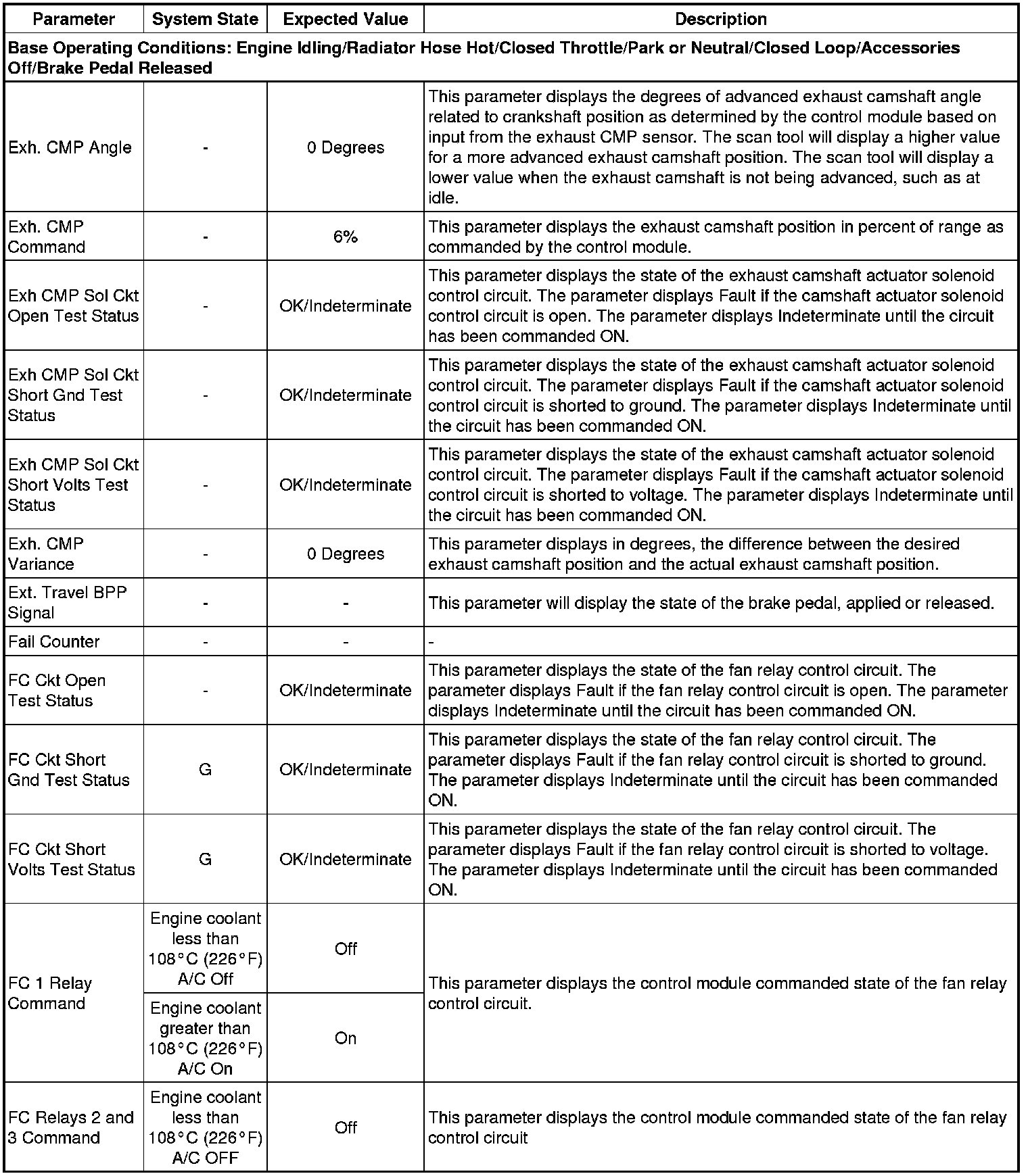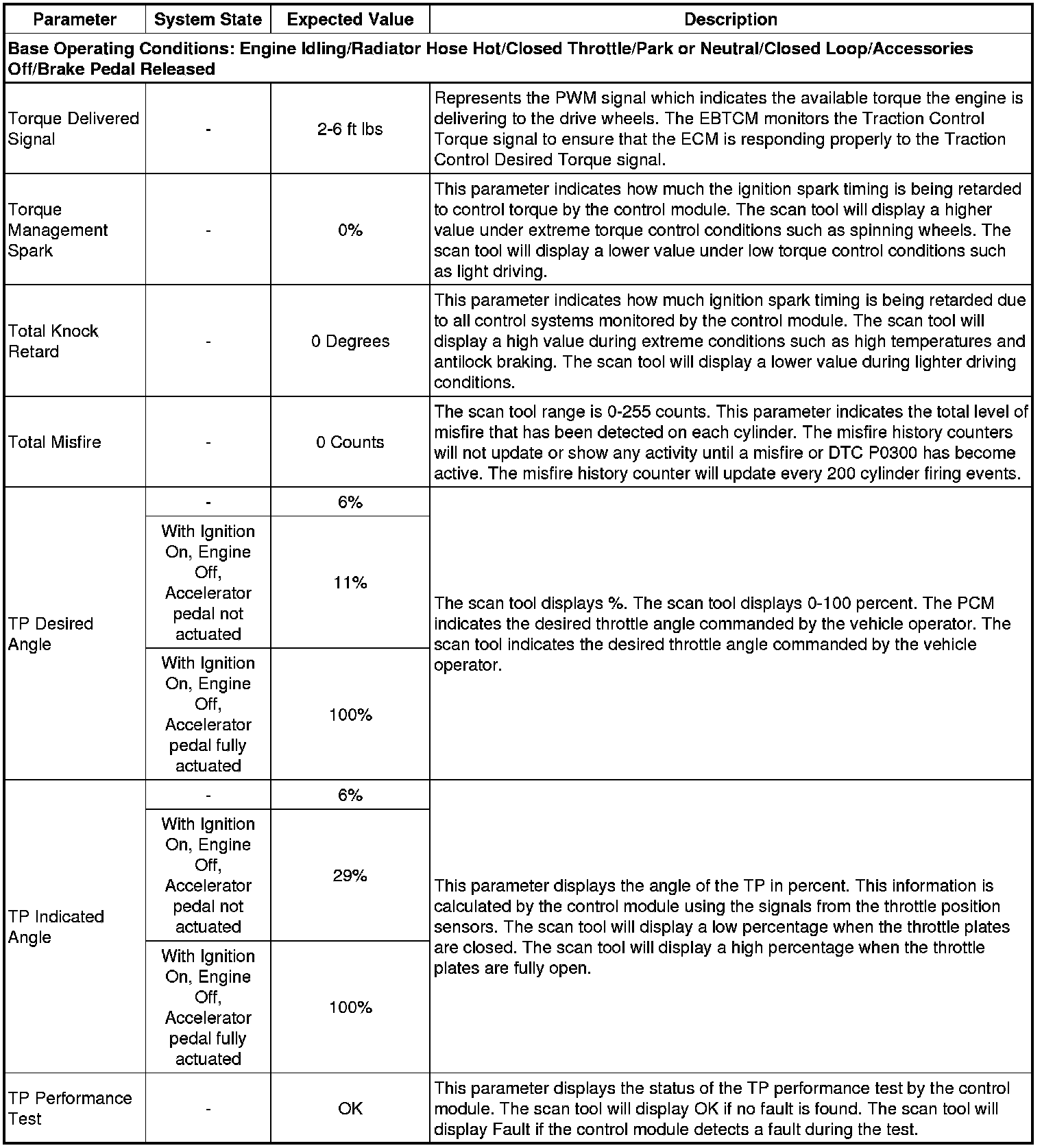 Only the parameters listed below are referenced in this service manual for use in diagnosis. If all values are within the typical range described below, refer to Symptoms - Engine Controls (- Symptoms - Engine Controls) for the 2.4L engine for diagnosis.