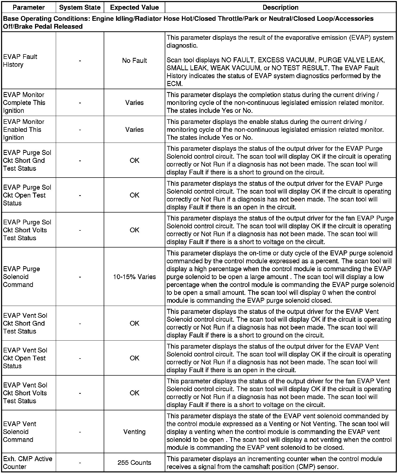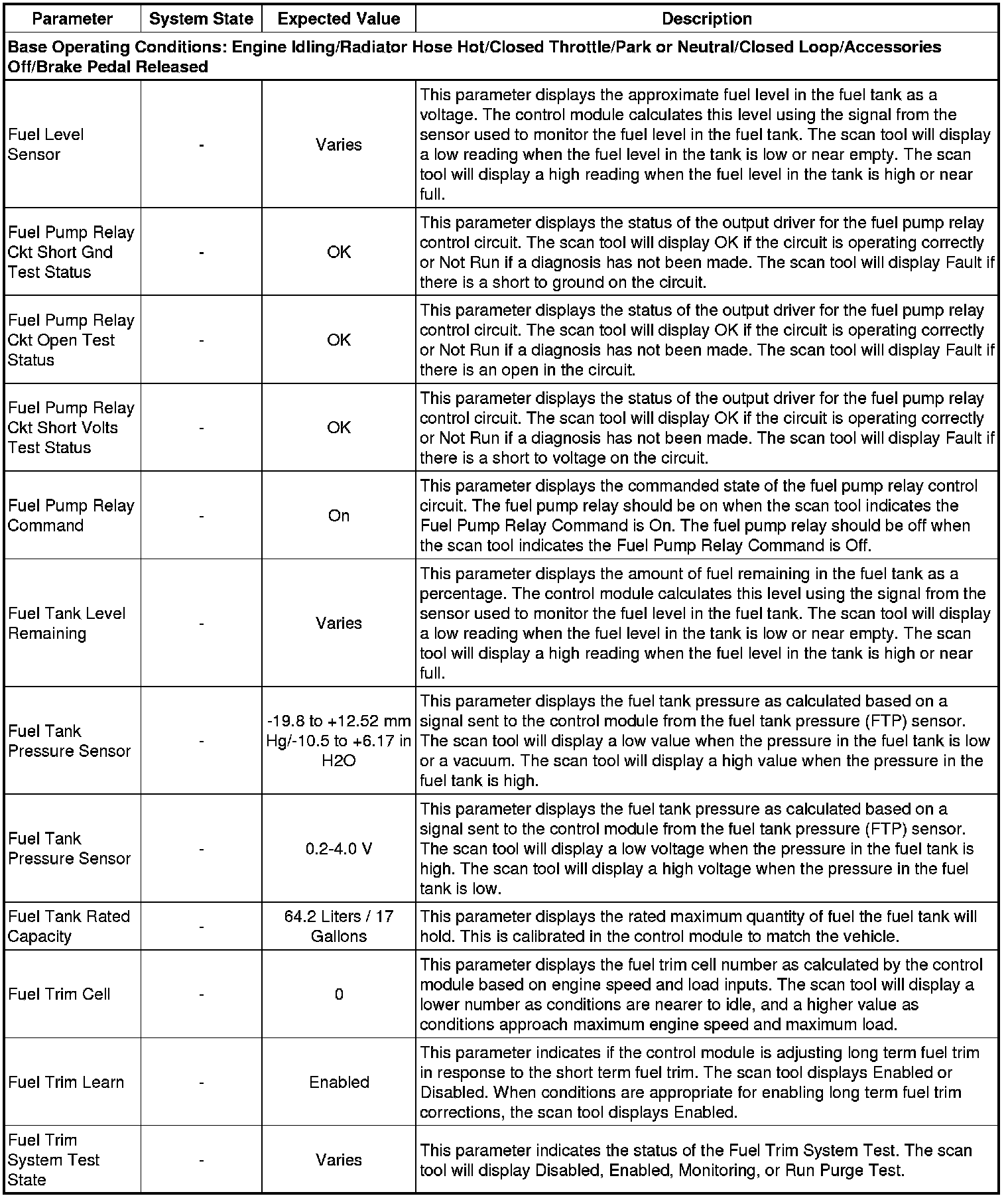The scan tool values from a properly running engine may be used for comparison with the engine you are diagnosing. The Engine Scan Tool Data List represents values that would be seen on a normally running engine.