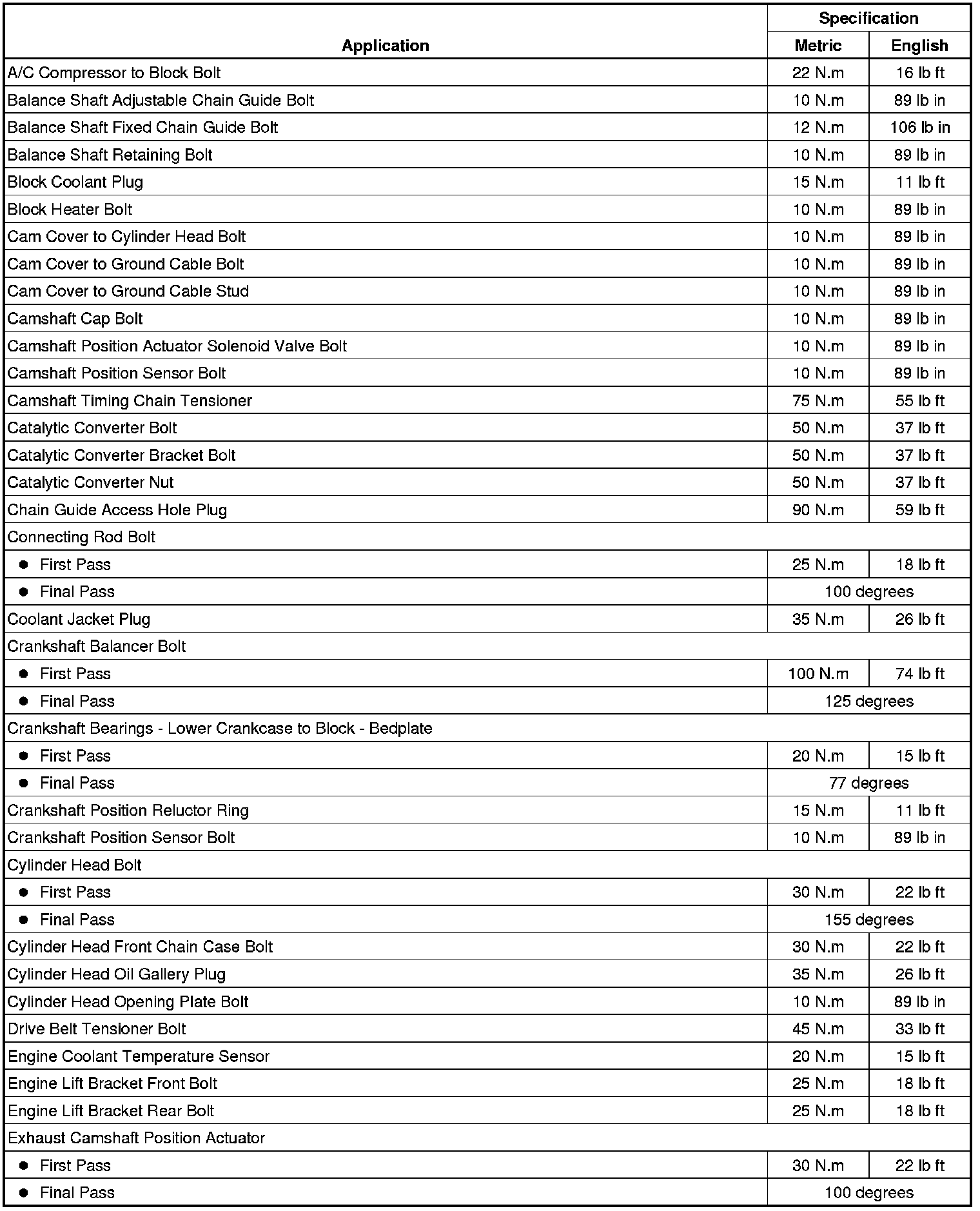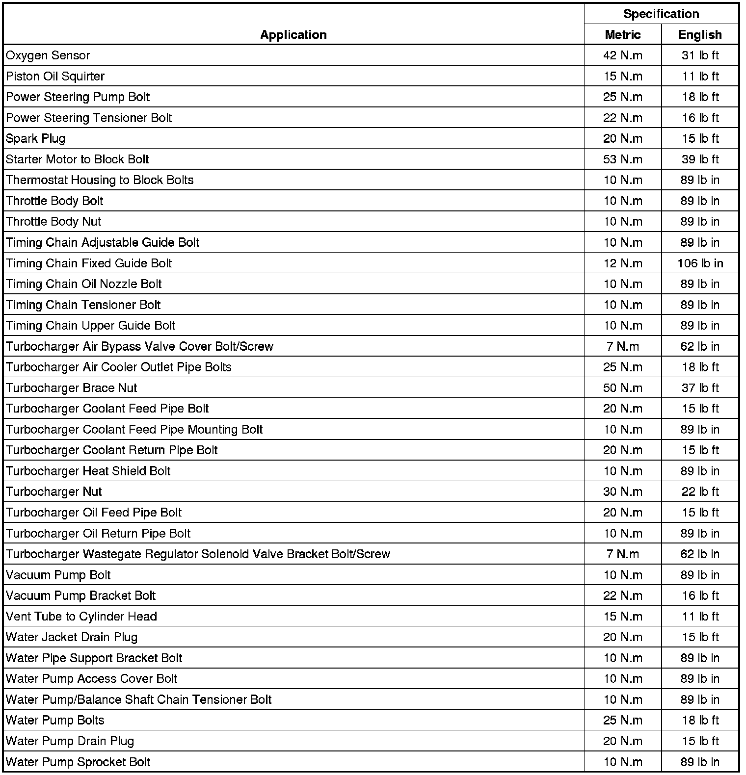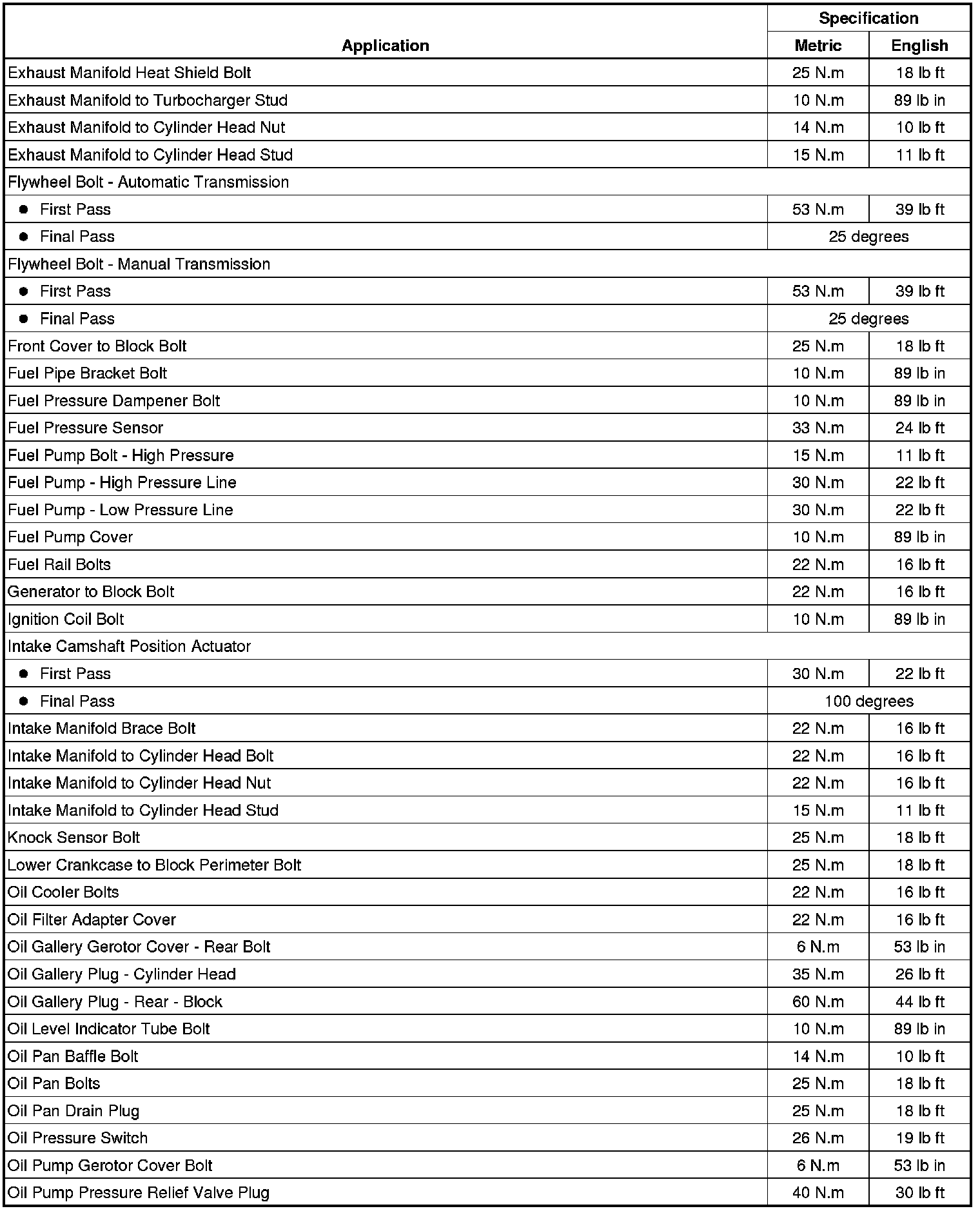Fastener Tightening Specifications