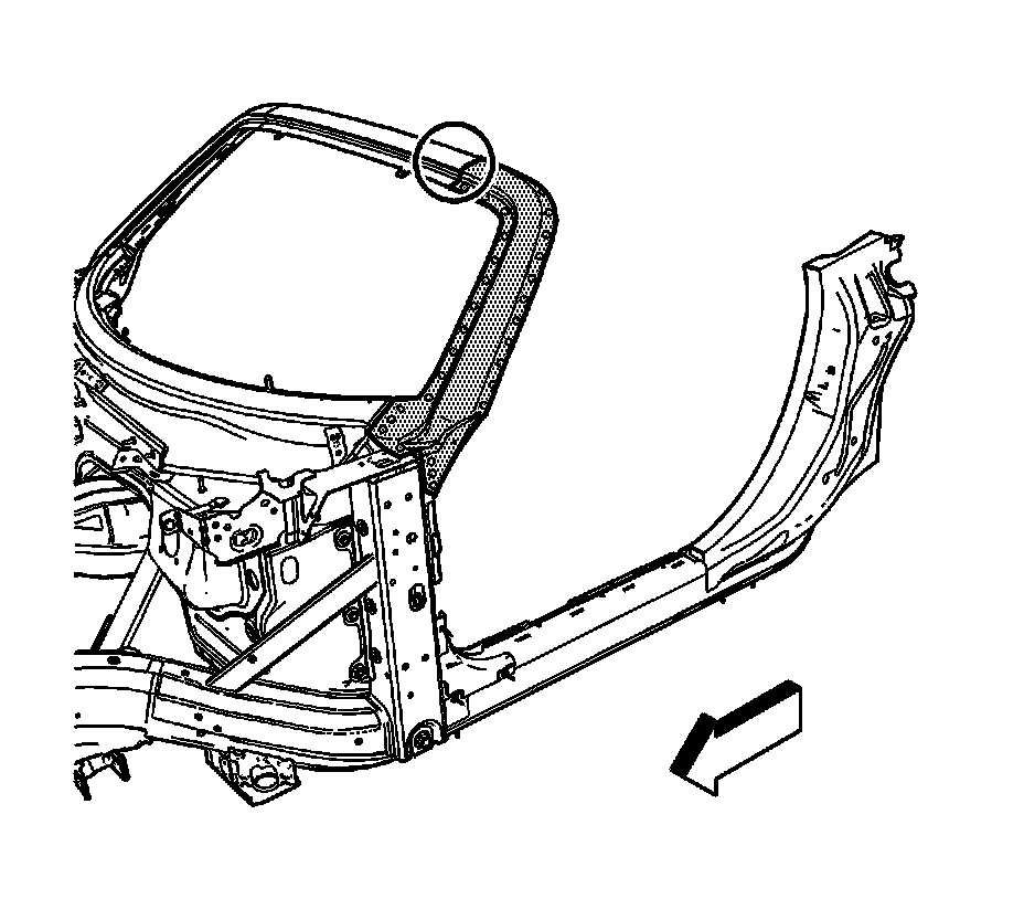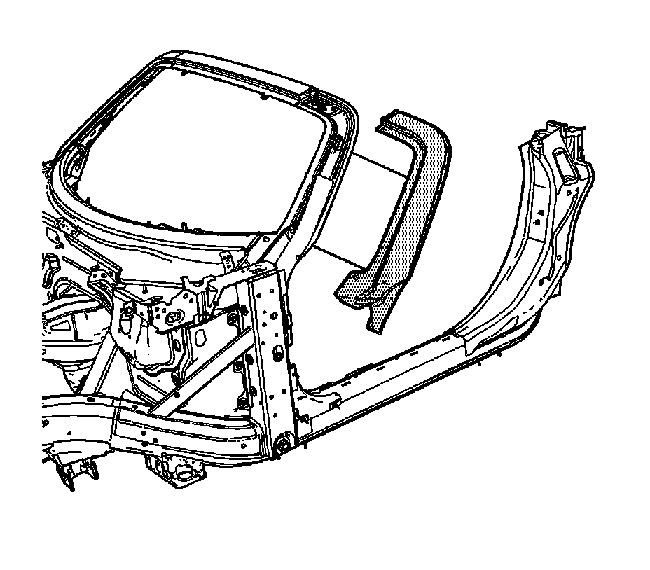 1.Position the windshield frame side panel to the vehicle. Use 3-dimensional measuring equipment to ensure fit. Clamp the panel into place.