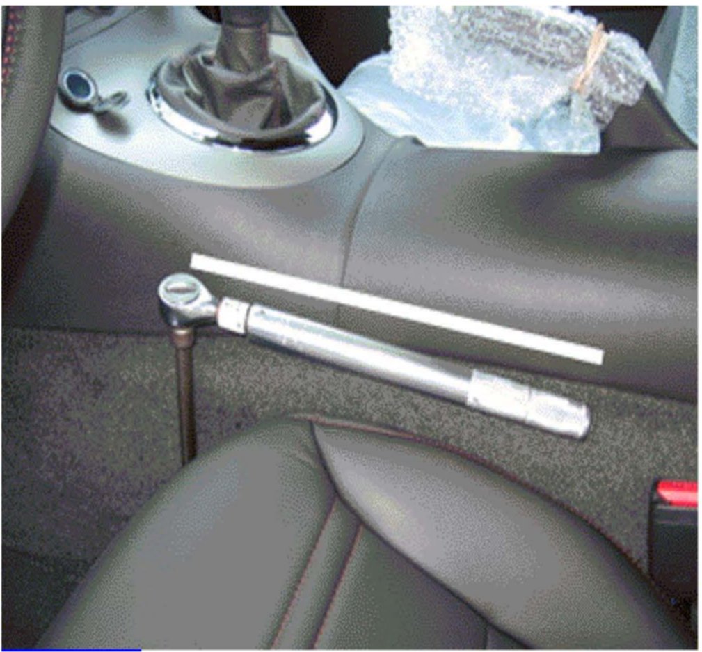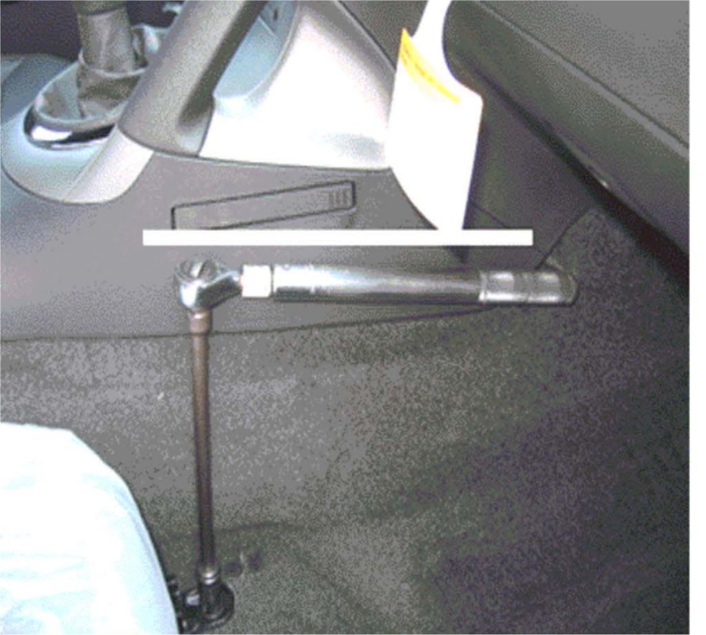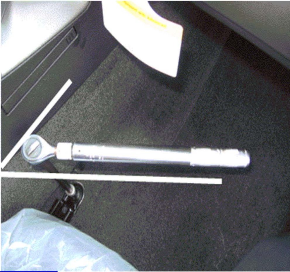 1. Place a 50 Nm wrench on the front driver's side inboard stud and align the handle with the tunnel.