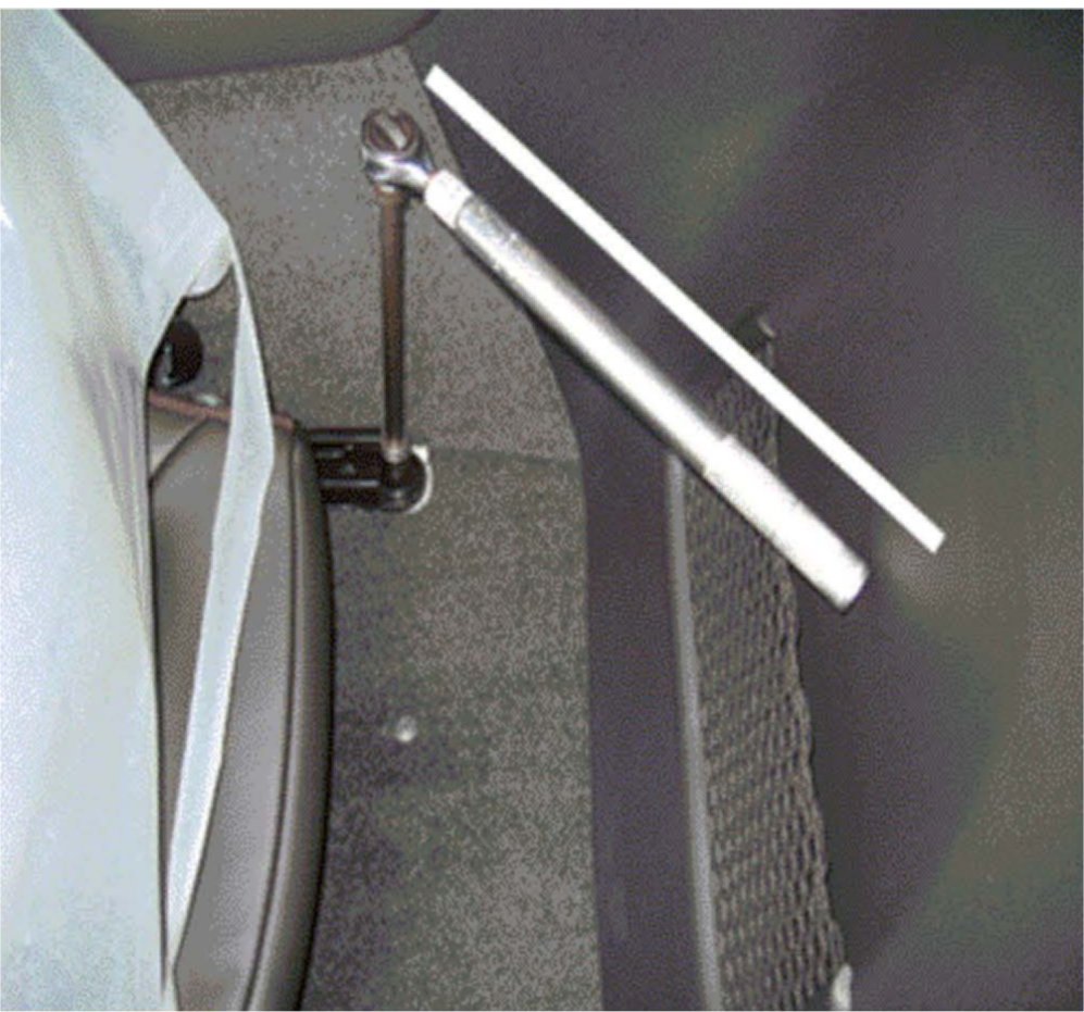 7. Place the 50 Nm wrench on the rear passenger side inboard stud and rotate the handle to the rear of the folded seat back.