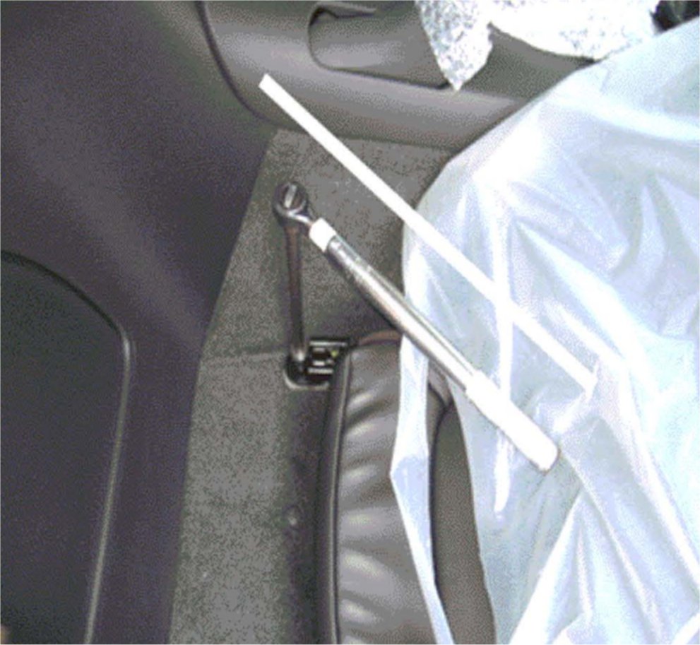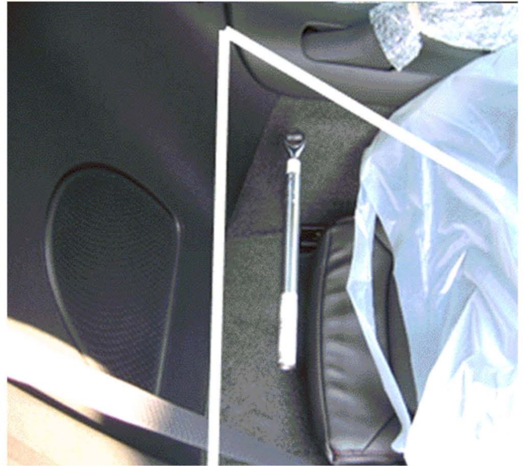 3. Place the 50 Nm wrench on the rear driver's side inboard stud and rotate the handle to the rear trim panel.