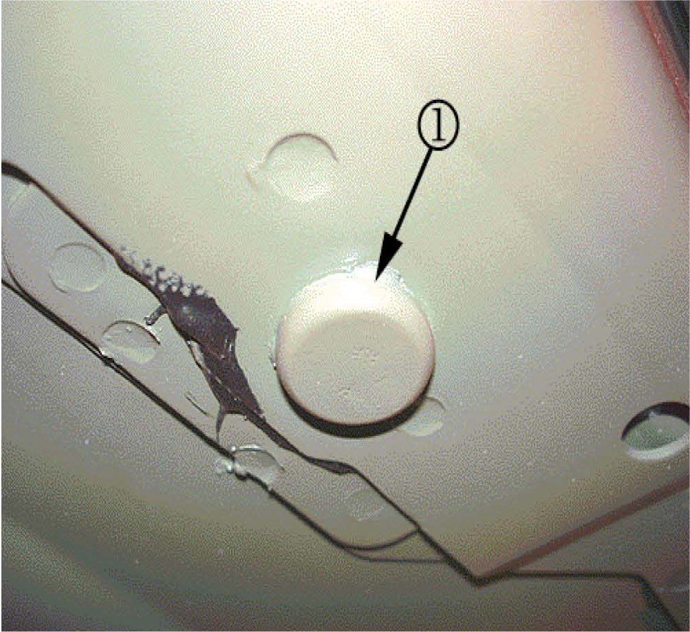 3. Locate the four inboard seat adjuster stud caps (1). The seat adjuster stud caps (1) are 22 mm (7/8 in) in size.