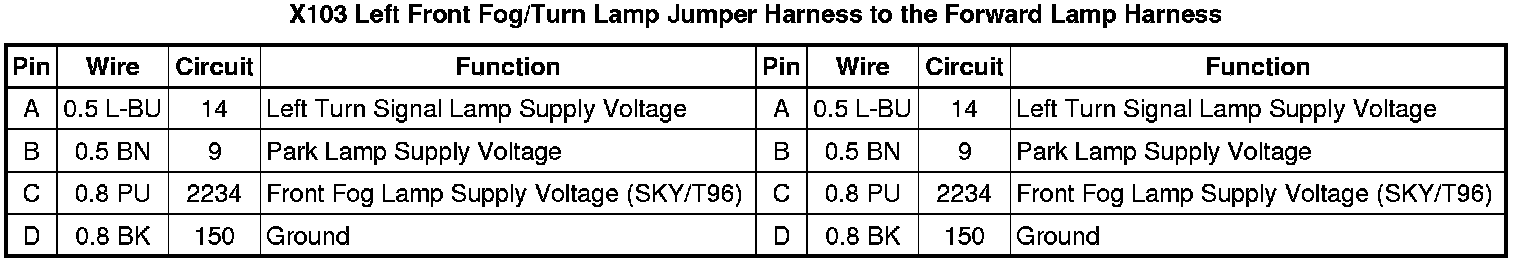 X103 Left Front Fog/Turn Lamp Jumper Harness to the Forward Lamp Harness
