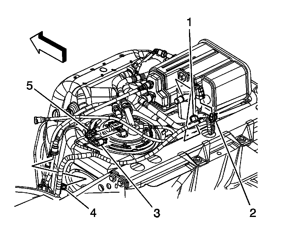 4. Disconnect the fuel tank pressure sensor electrical connector (5).