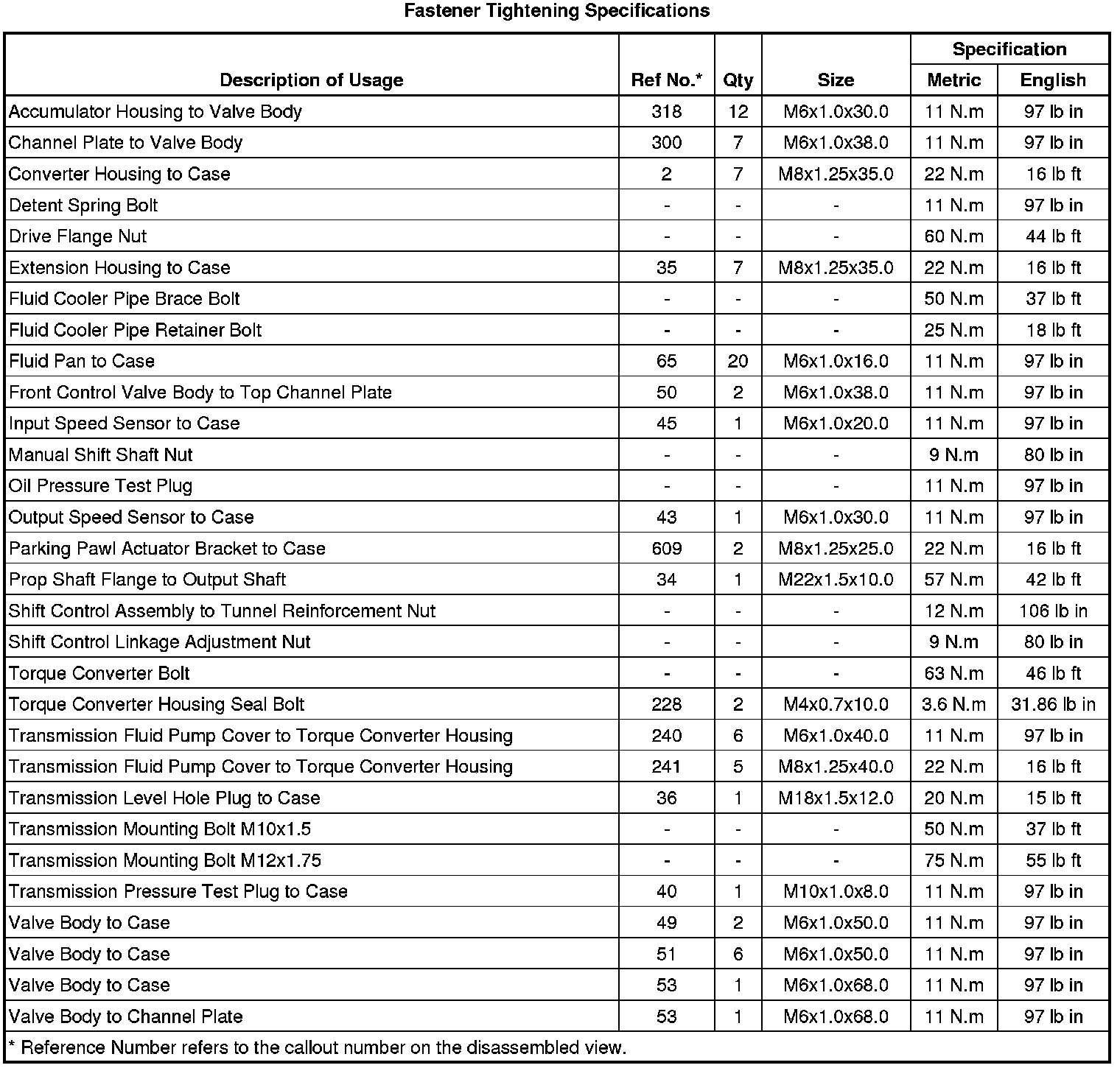 Fastener Tightening Specifications