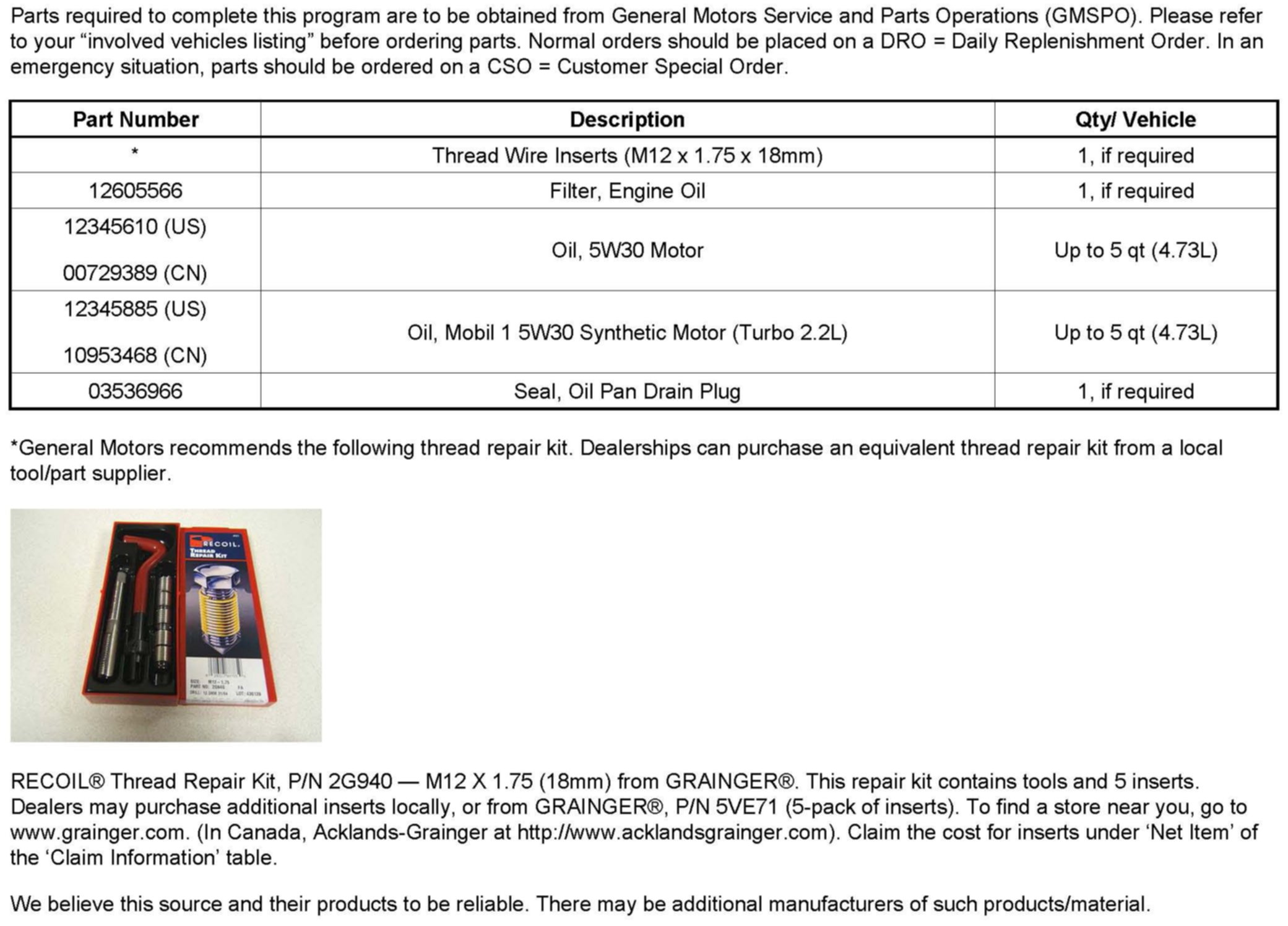Campaign - Engine Oil Pan Drain Plug Threaded Insert: Overview