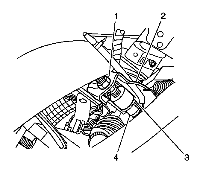 3. Remove the cruise control release switch (3) with the locknut from the clutch pedal bracket (2) by unscrewing it in the counterclockwise direction.
