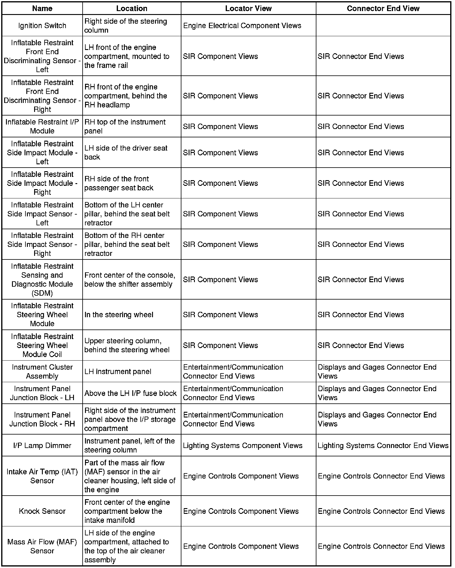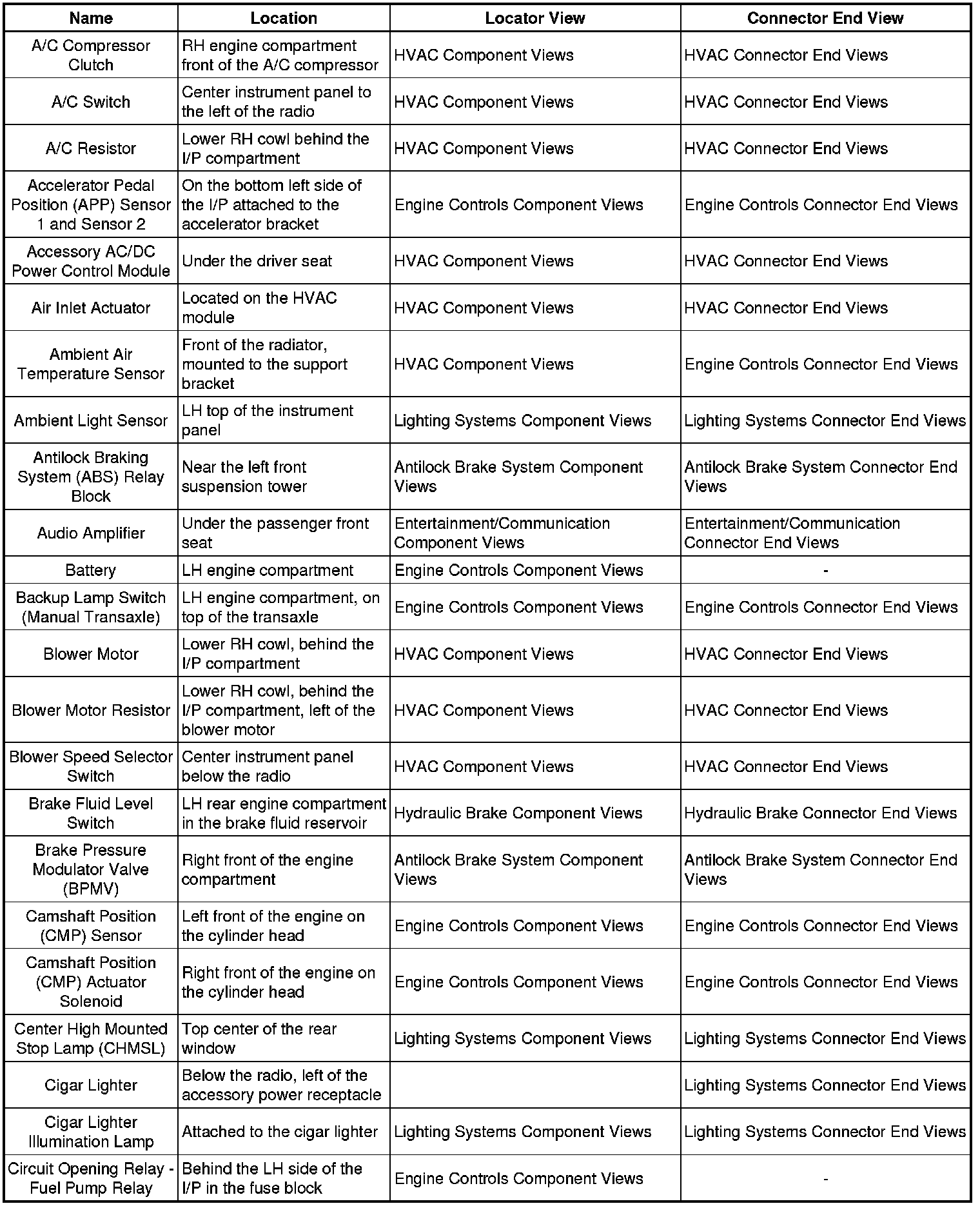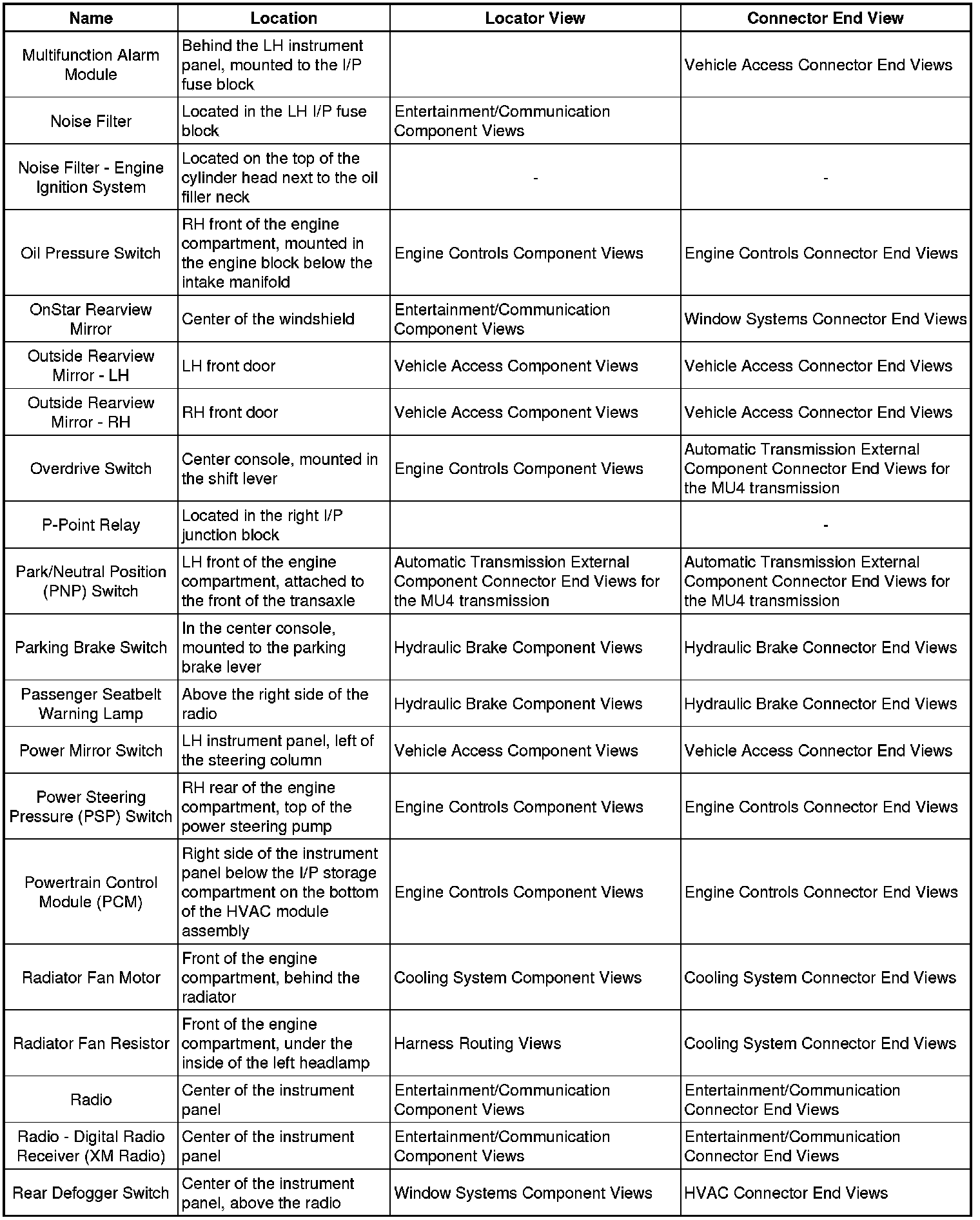 Master Electrical Component List