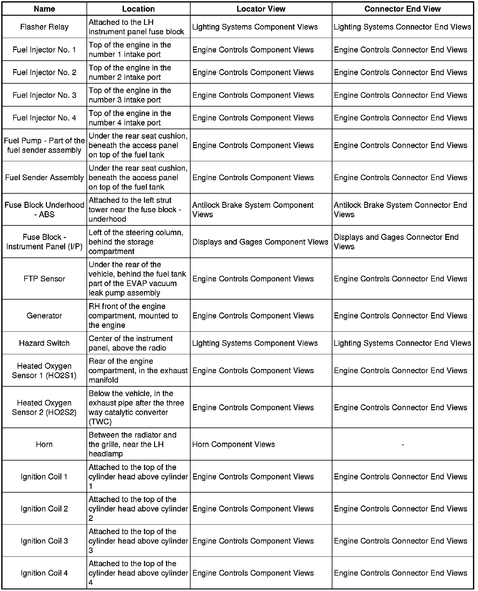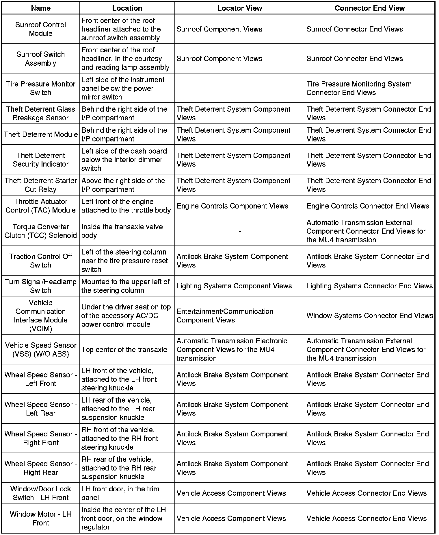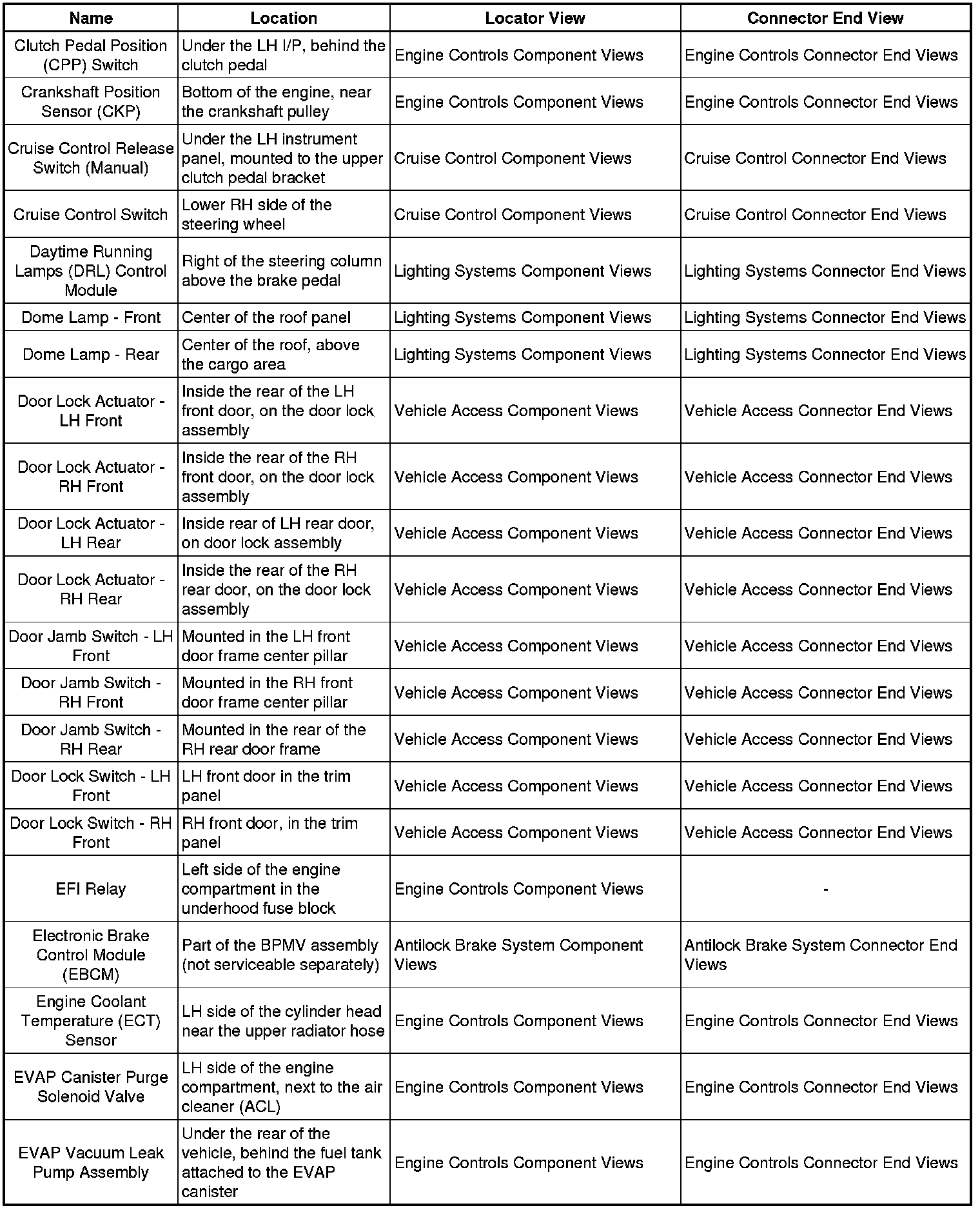 Master Electrical Component List