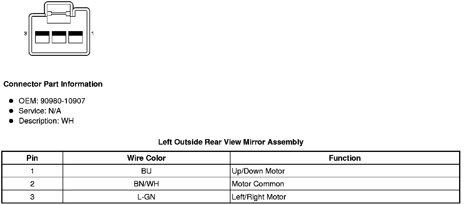 Left Outside Rear View Mirror Assembly