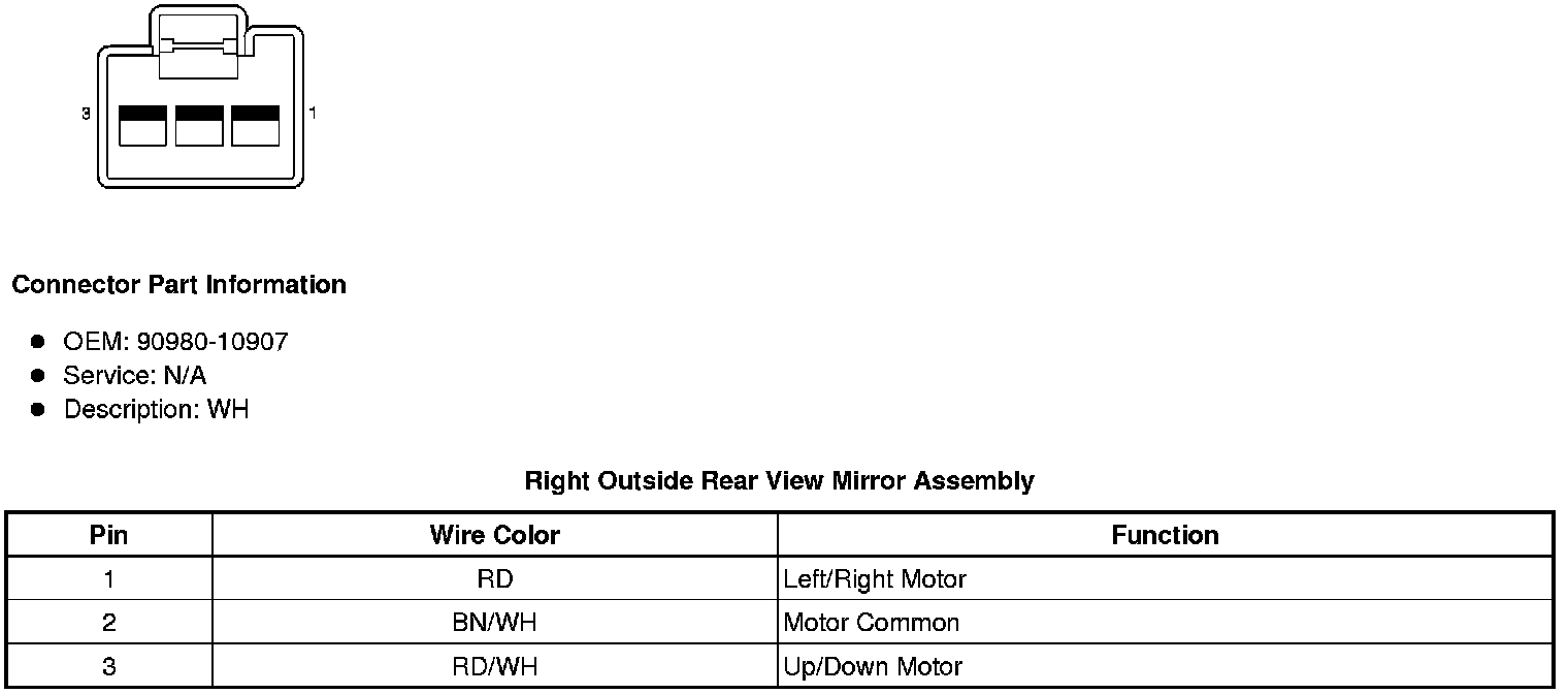 Right Outside Rear View Mirror Assembly