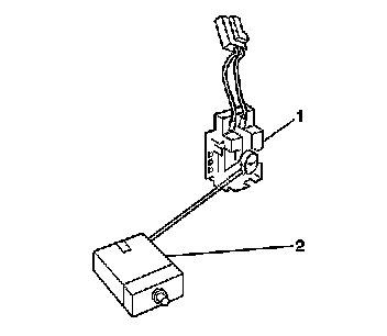 The fuel level sensor is part of the fuel sender assembly. The fuel level sensor (1) consists of a float (2), a float arm, and a variable resistor (1). The fuel level is measured by the position of the float in the fuel tank, and is indicated by a gage in the instrument panel cluster (IPC) assembly. When the fuel level changes, the float position changes. The change in the float position increases or decreases the resistance reading of the variable resistor. The change in the resistance causes the position of the fuel gauge pointer to change.