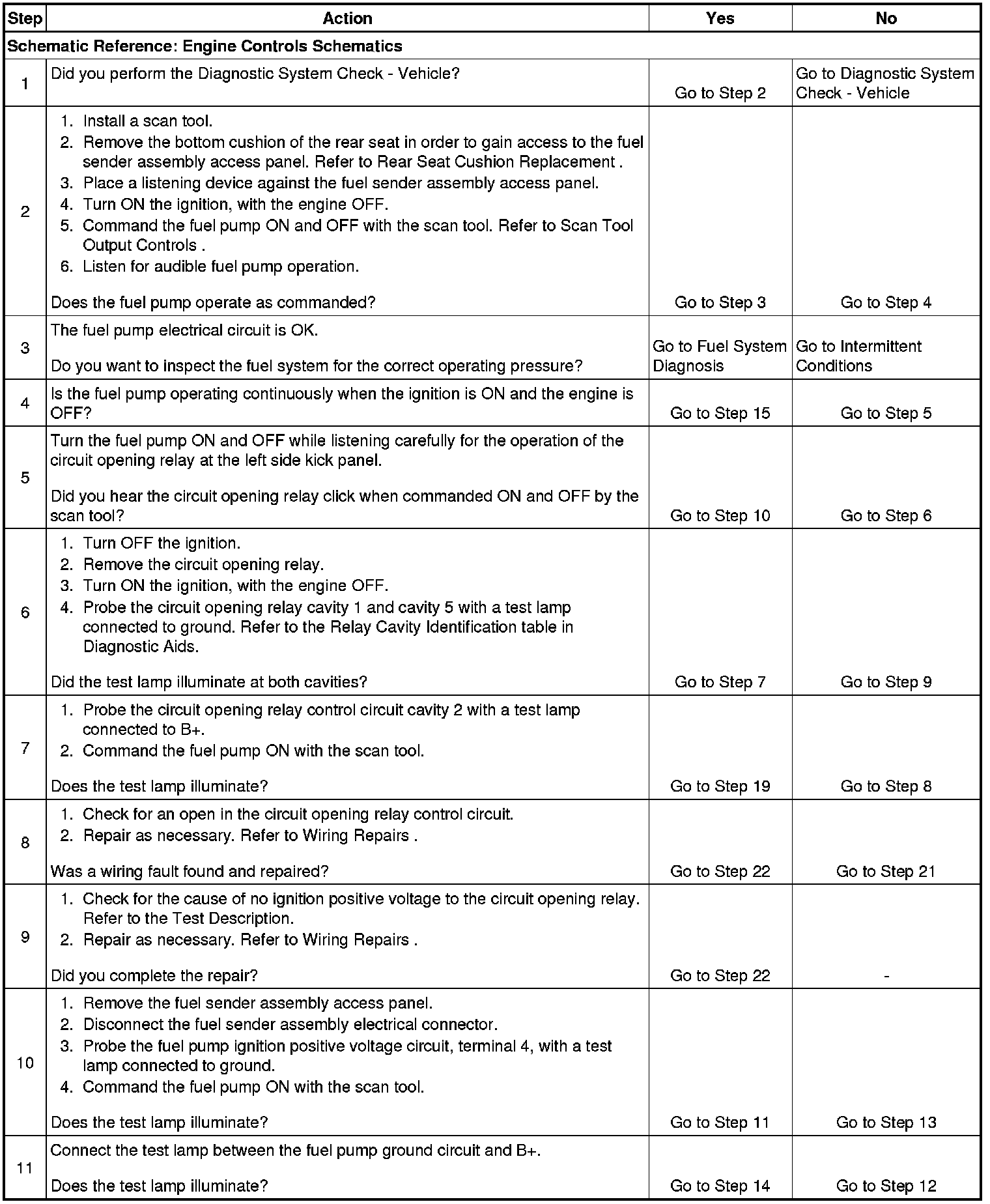 2. This step checks for the operation of the fuel pump. Fuel pump operation is difficult to hear without seat cushion removal.
