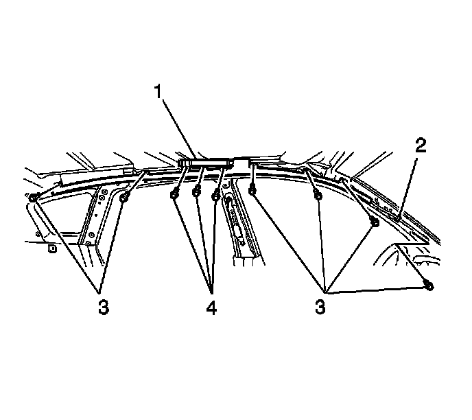2. Install the roof rail module bolts (4) in sequence shown.