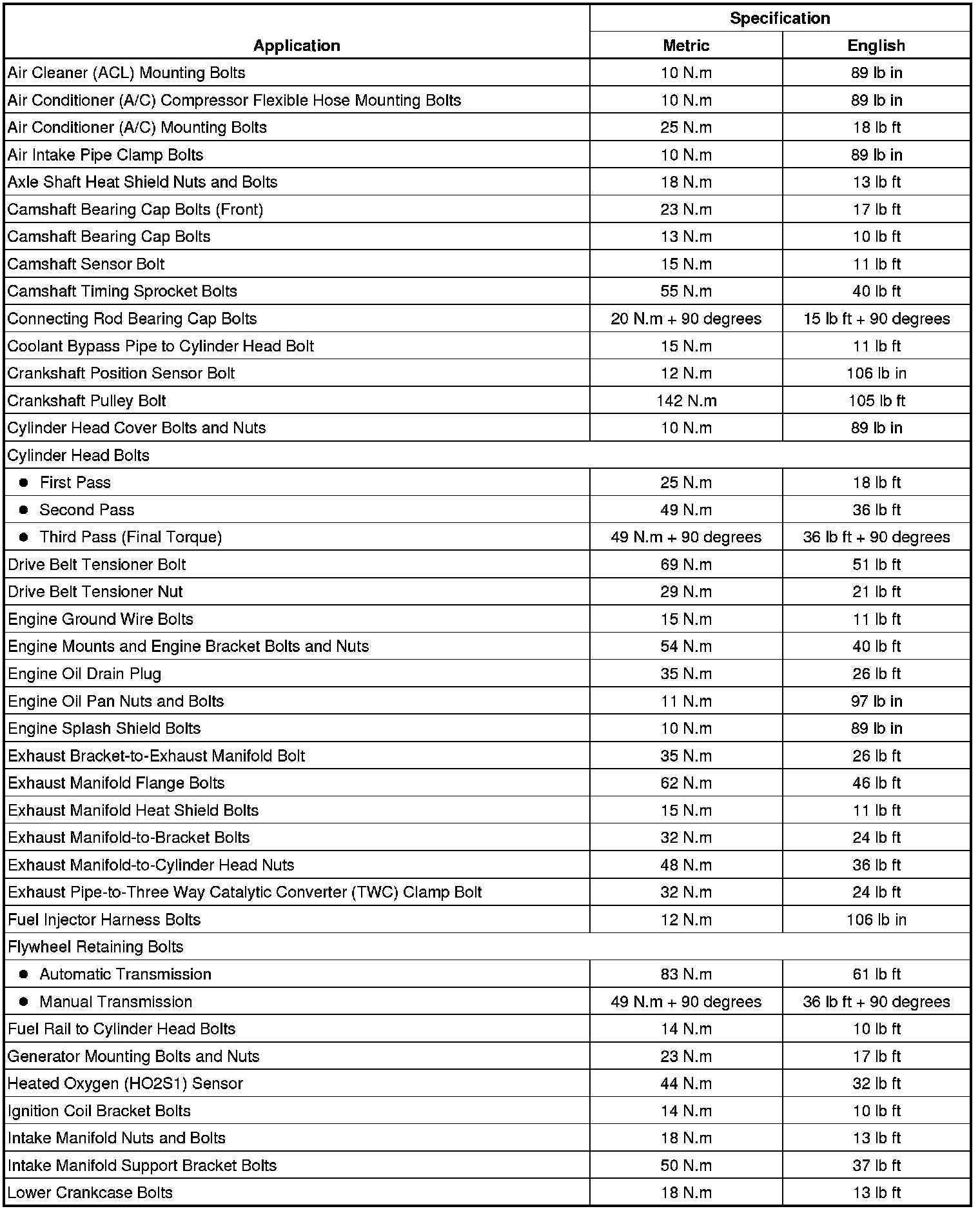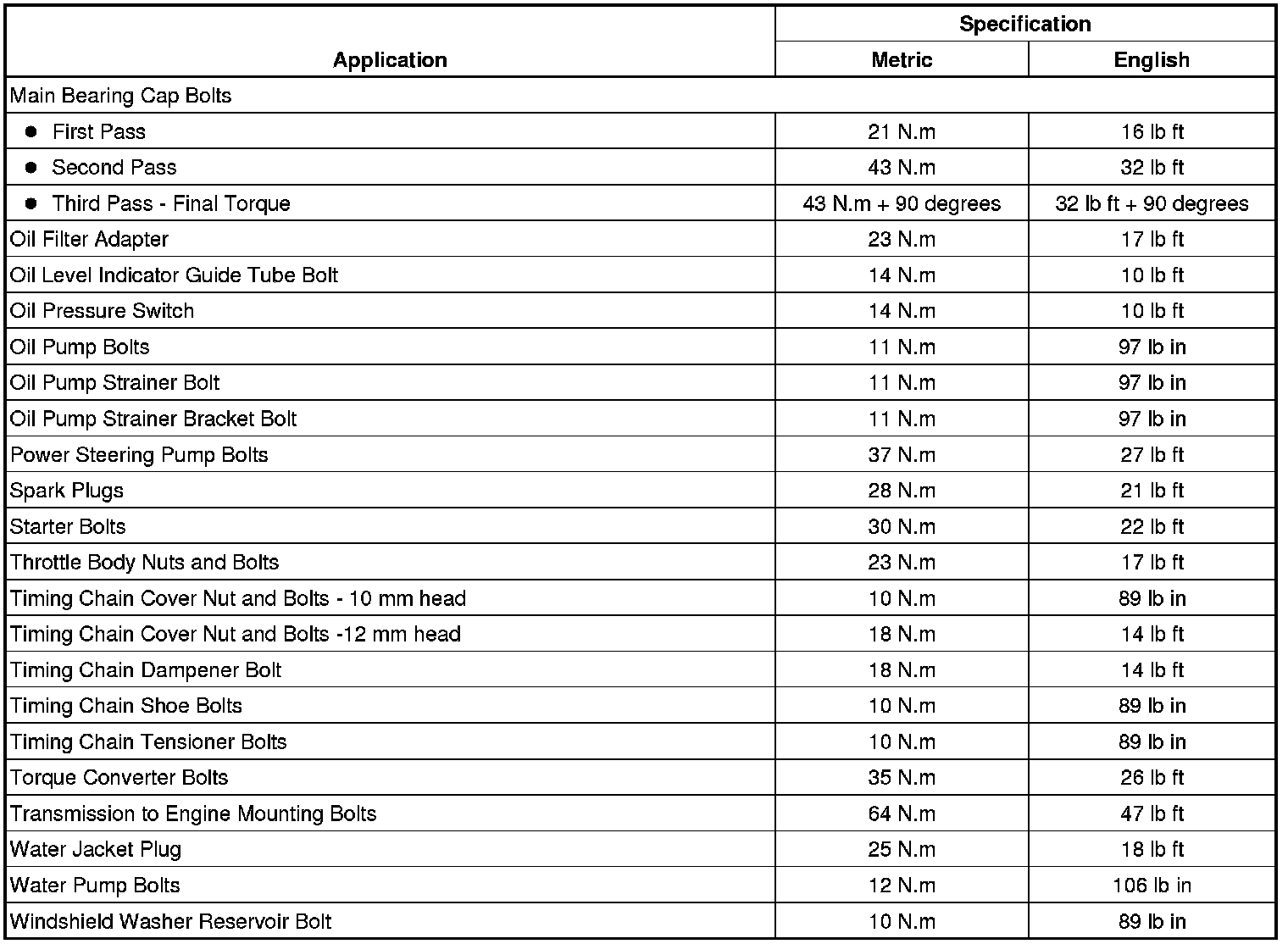 Fastener Tightening Specifications