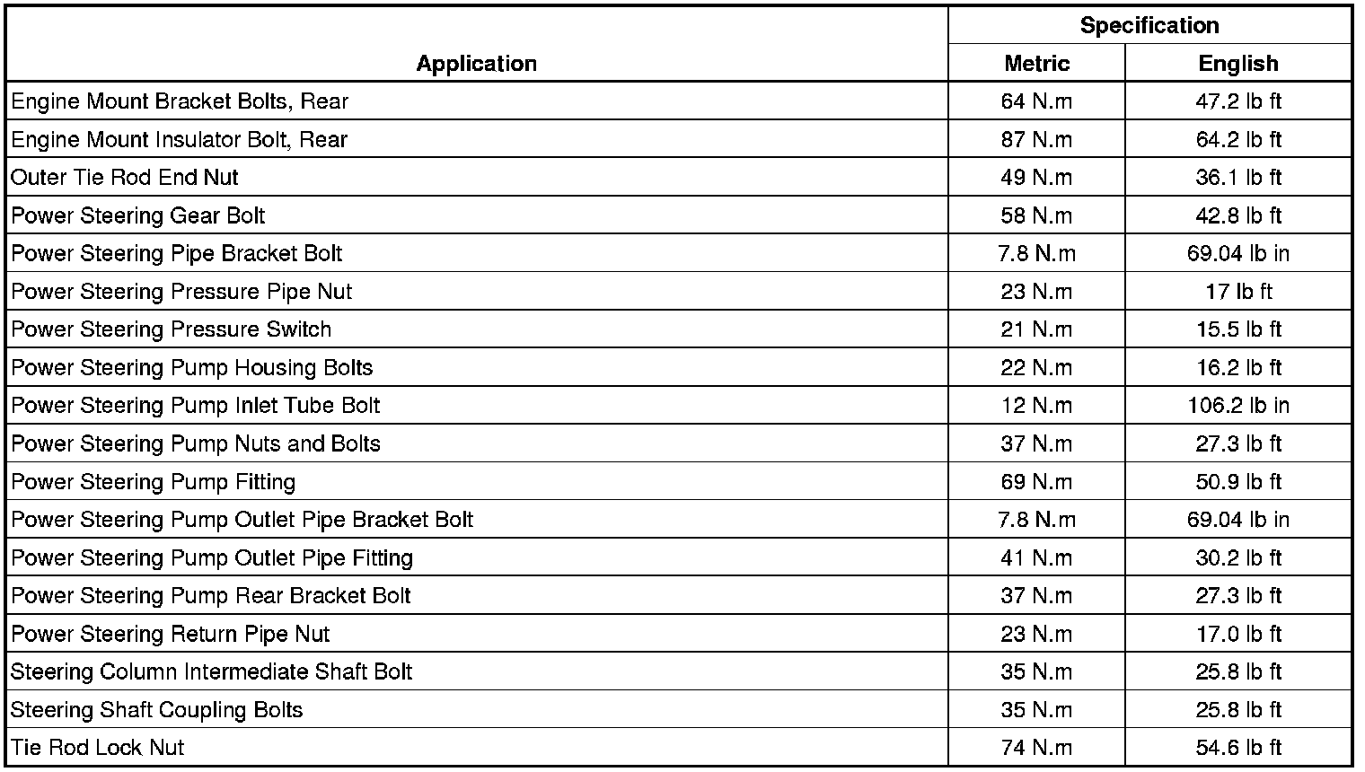 Fastener Tightening Specifications