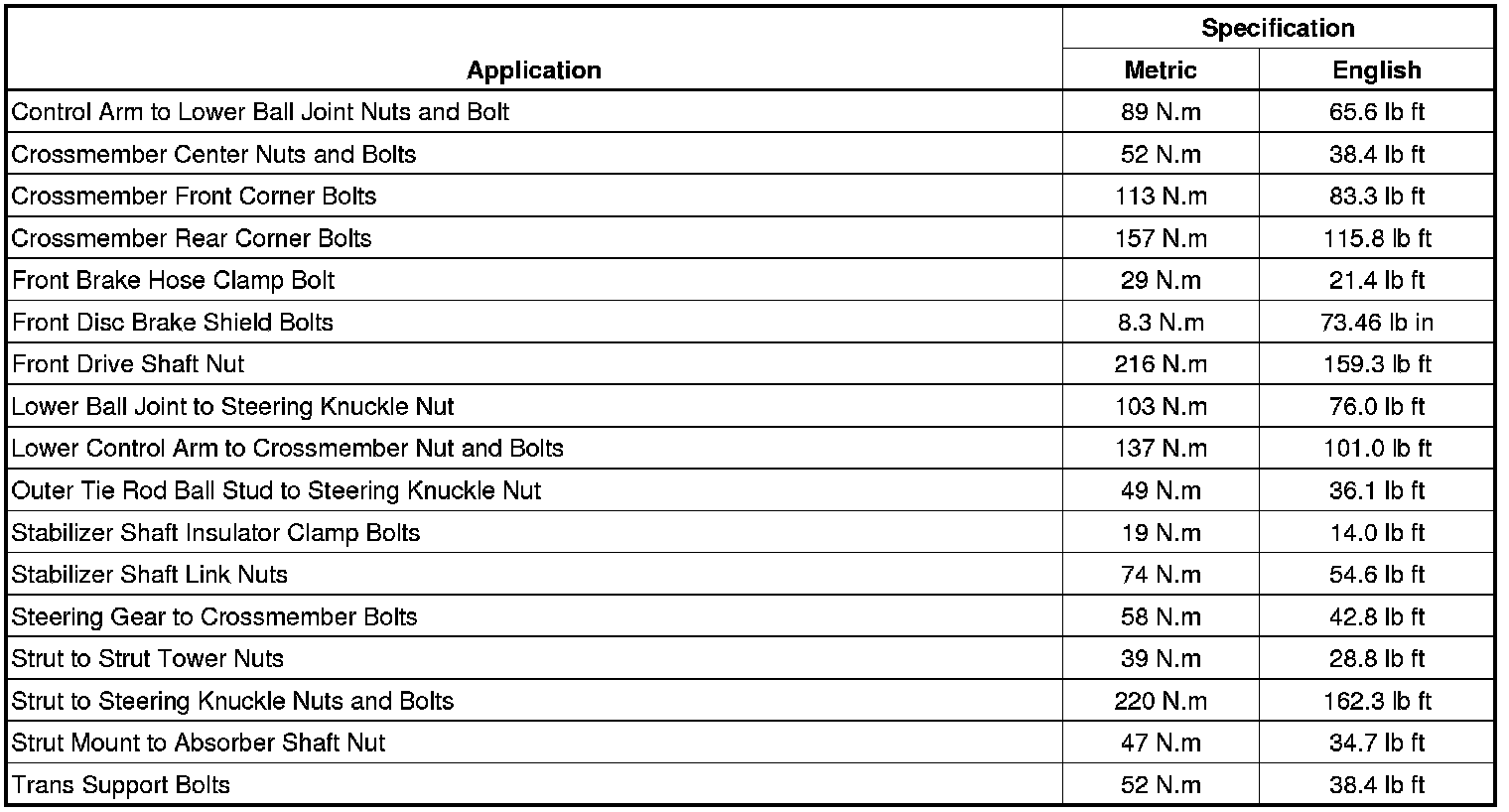 Fastener Tightening Specifications