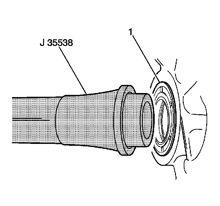 1. Use the J 35538 and a hammer in order to install a new wheel drive shaft oil seal (1):