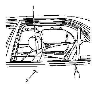2. Gently pry the outer sealing strip (1) from the door (2) using a taped flat bladed tool.